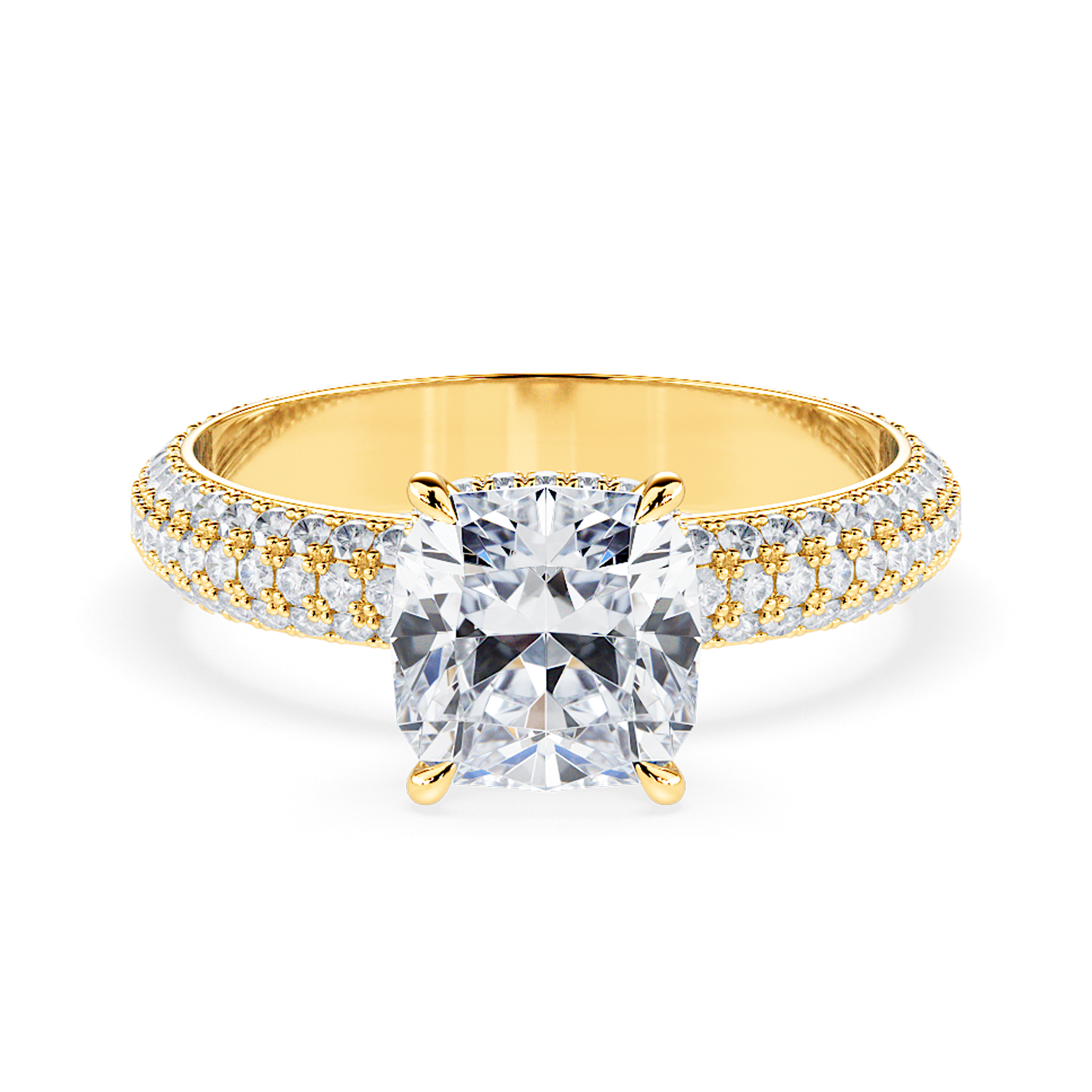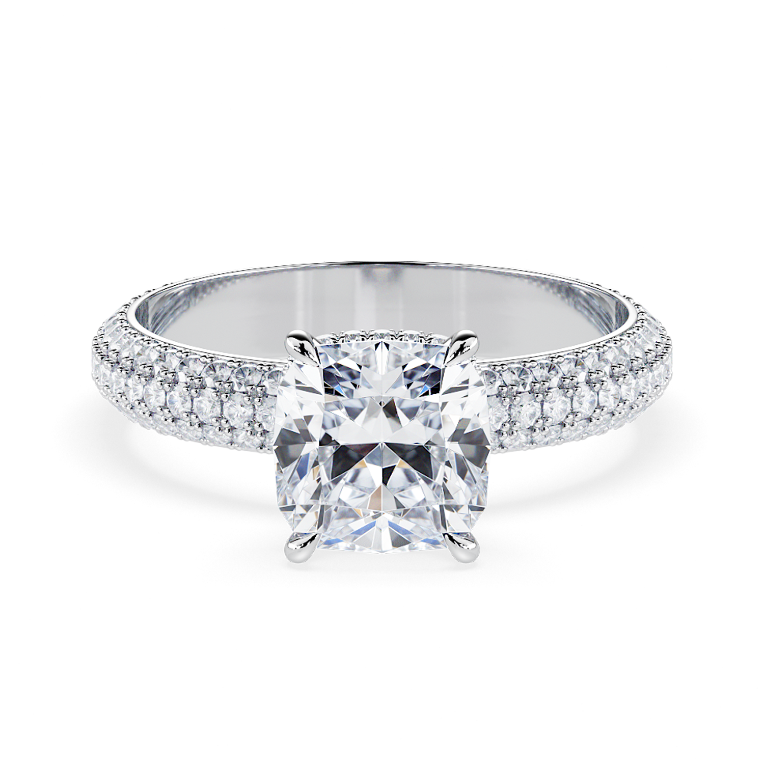 Cushion Three Row Pavé with Hidden Halo and Diamond Set Prongs