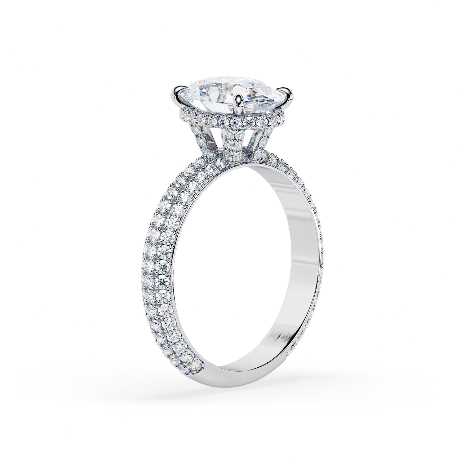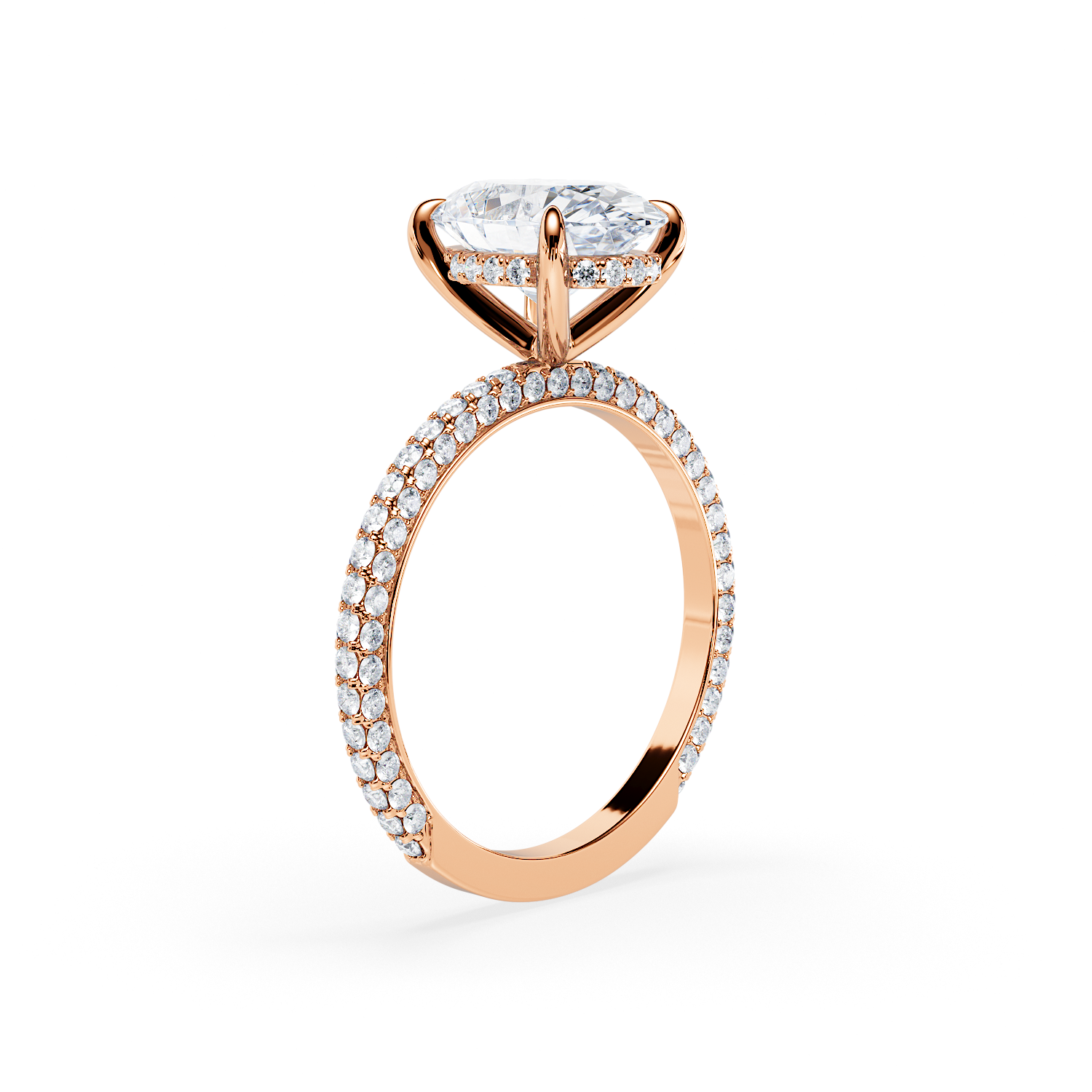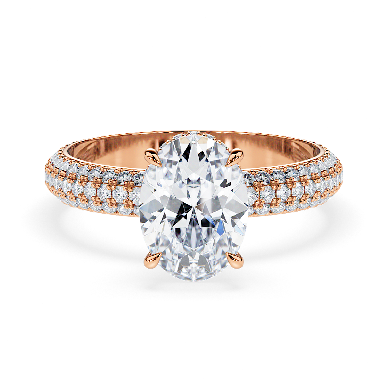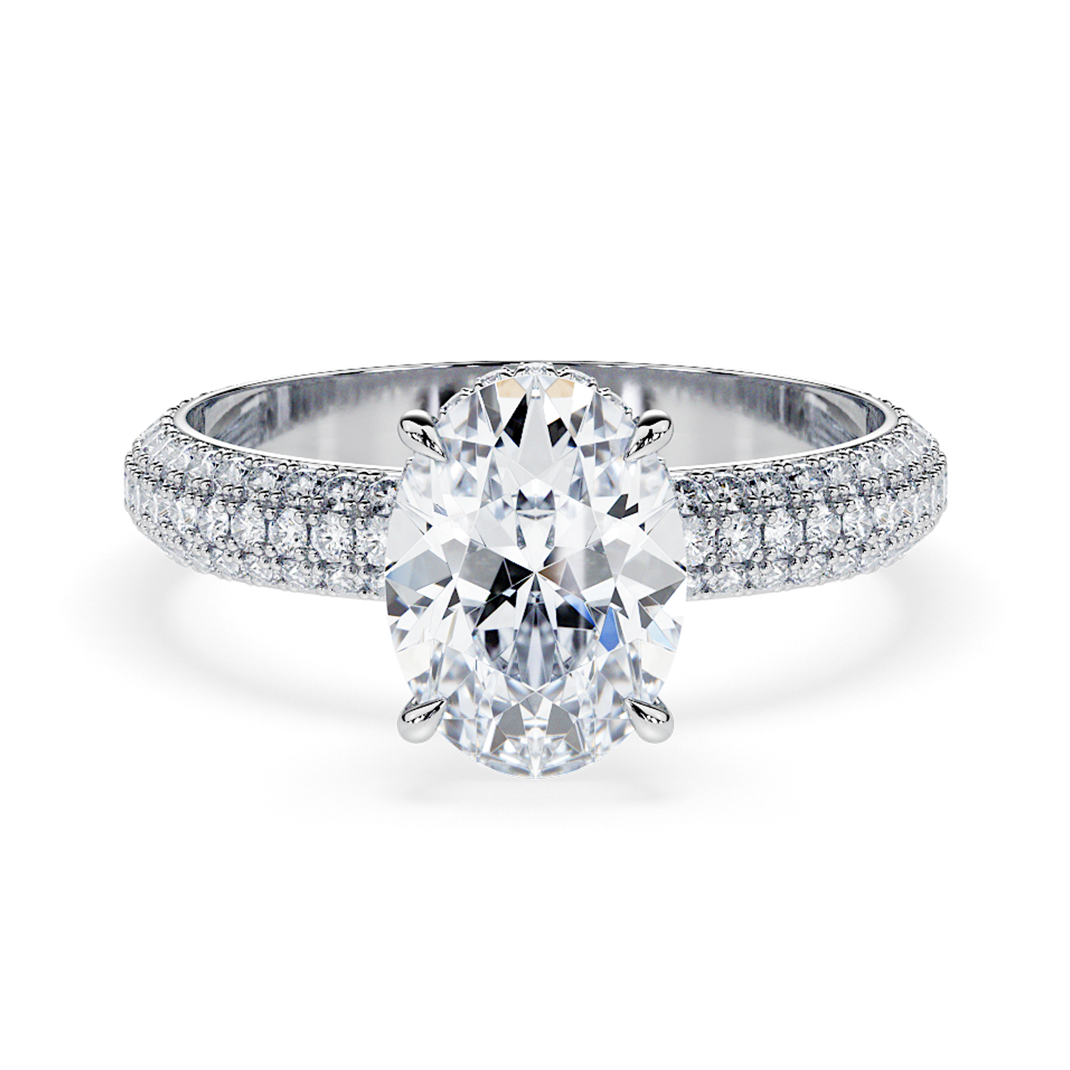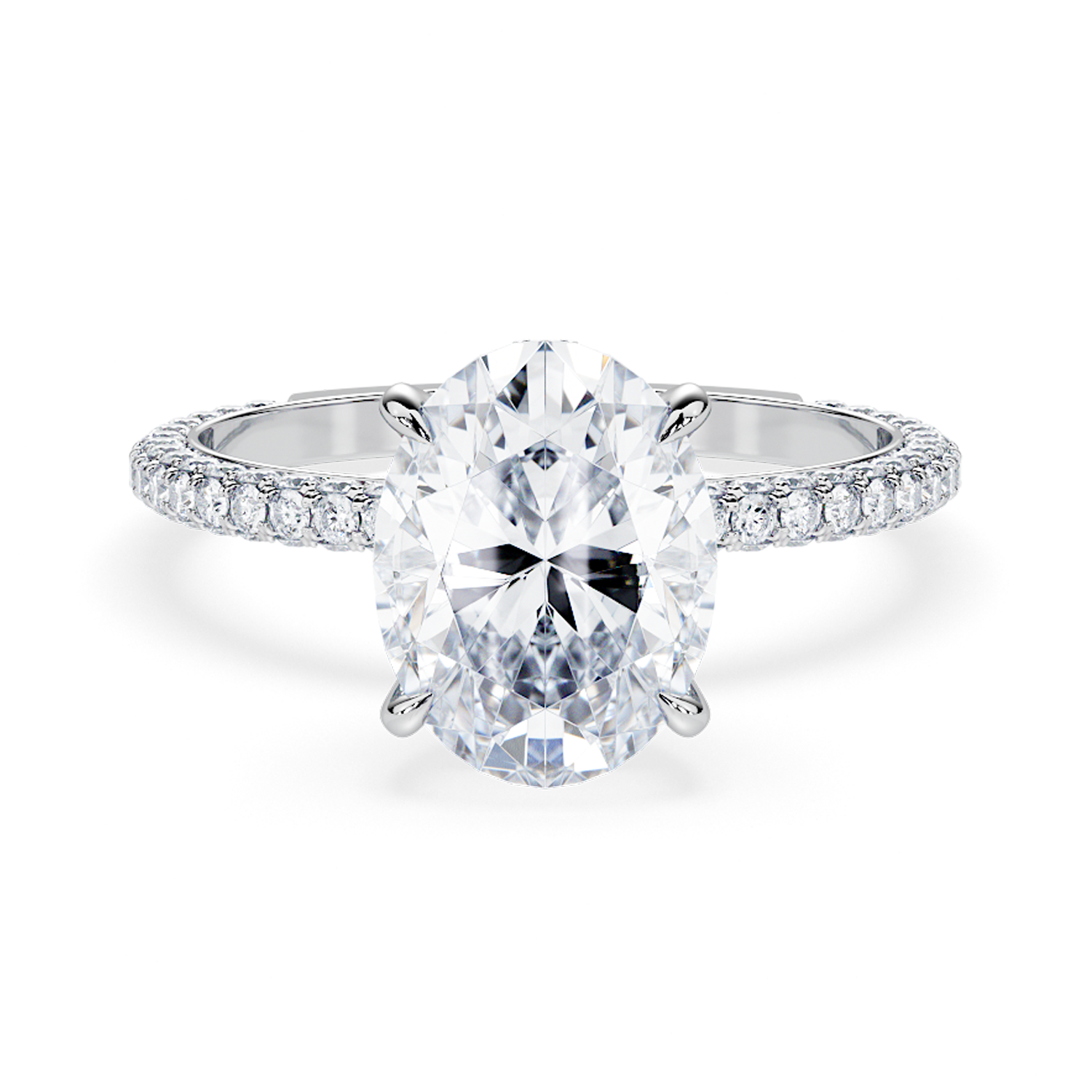 Oval Three Row Pavé with Hidden Halo and Diamond Set Prongs