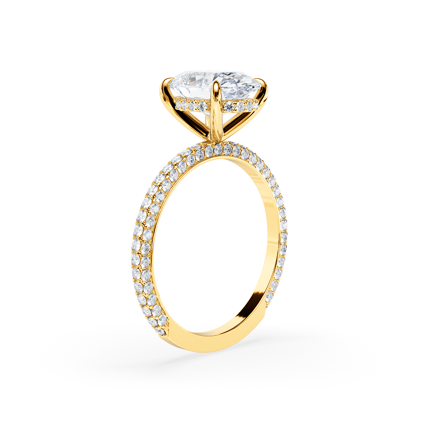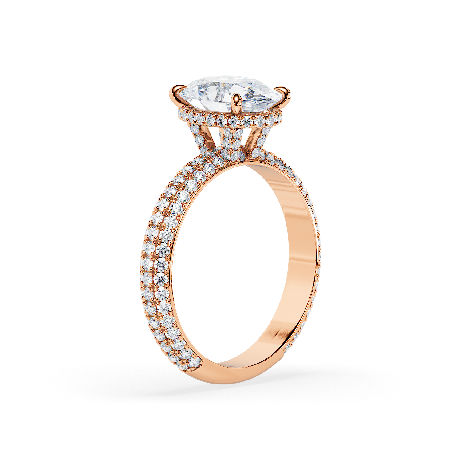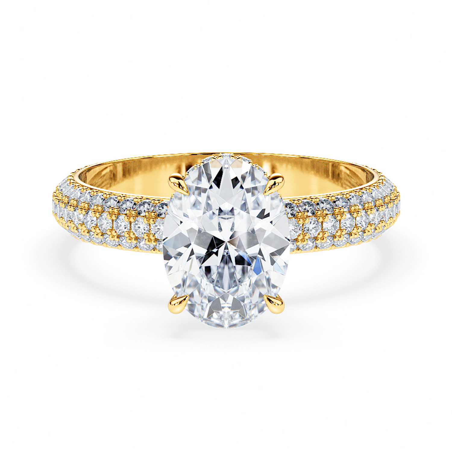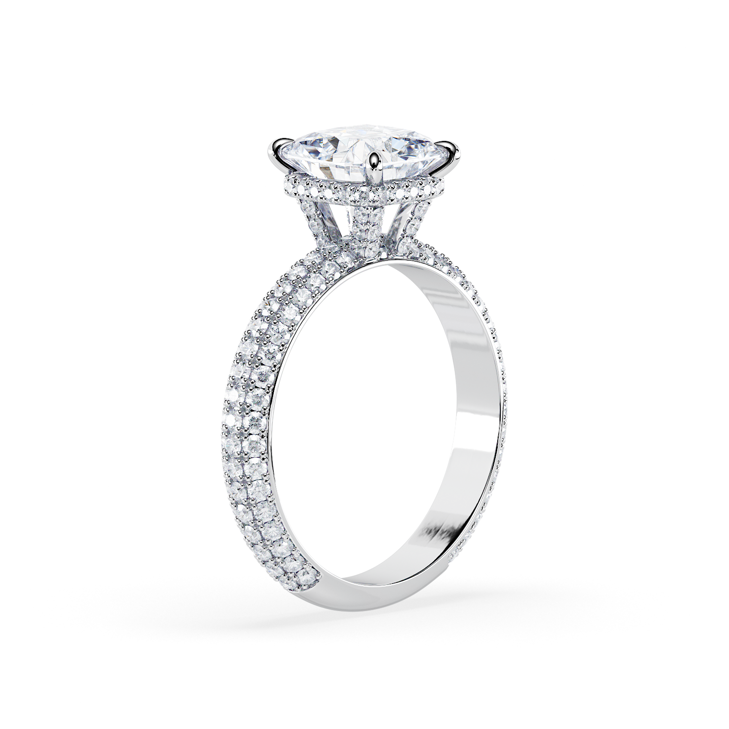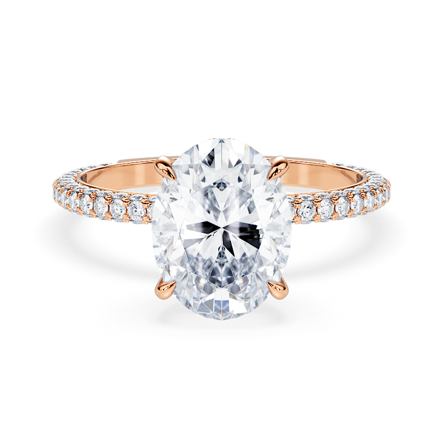 Oval Three Row Pavé with Hidden Halo and Diamond Set Prongs