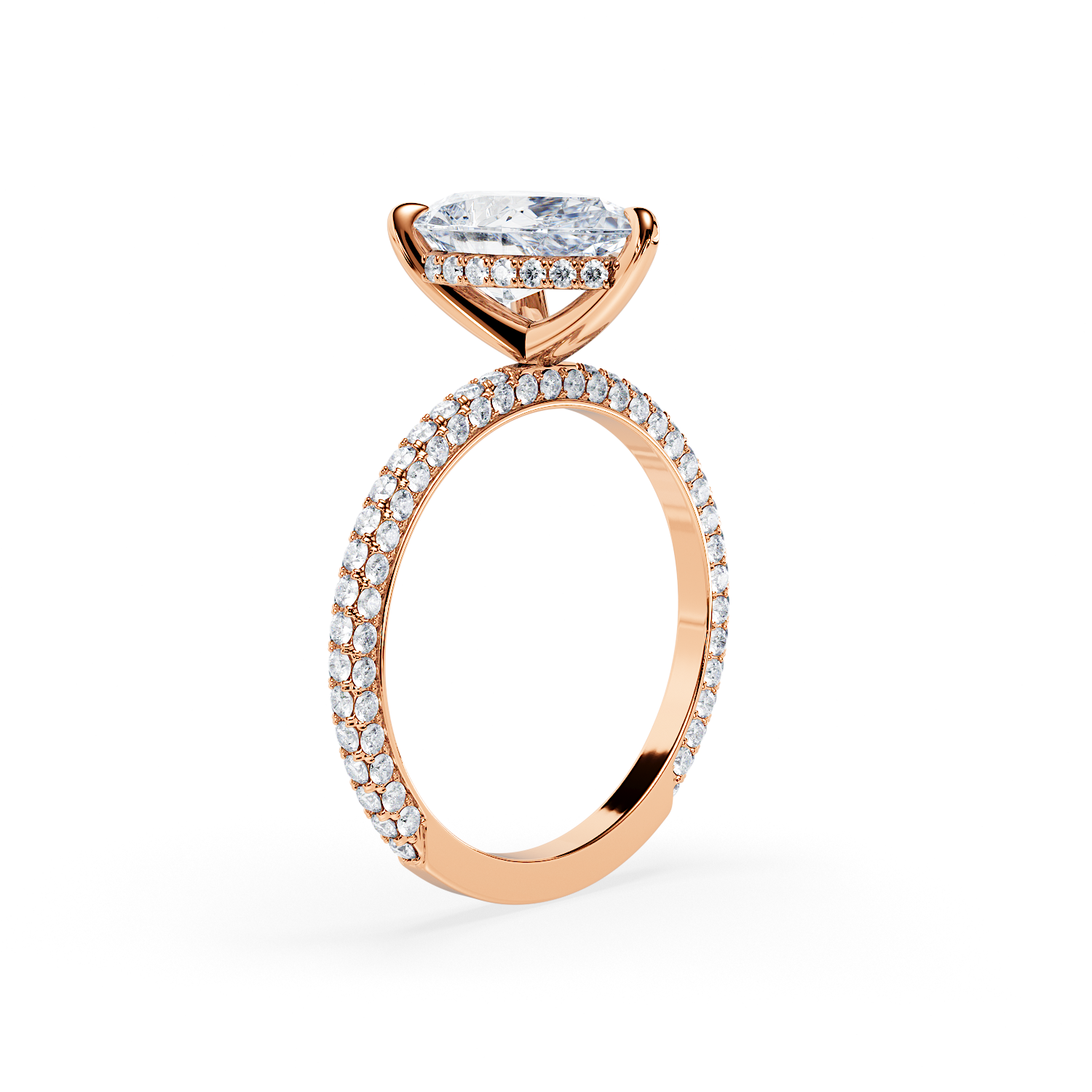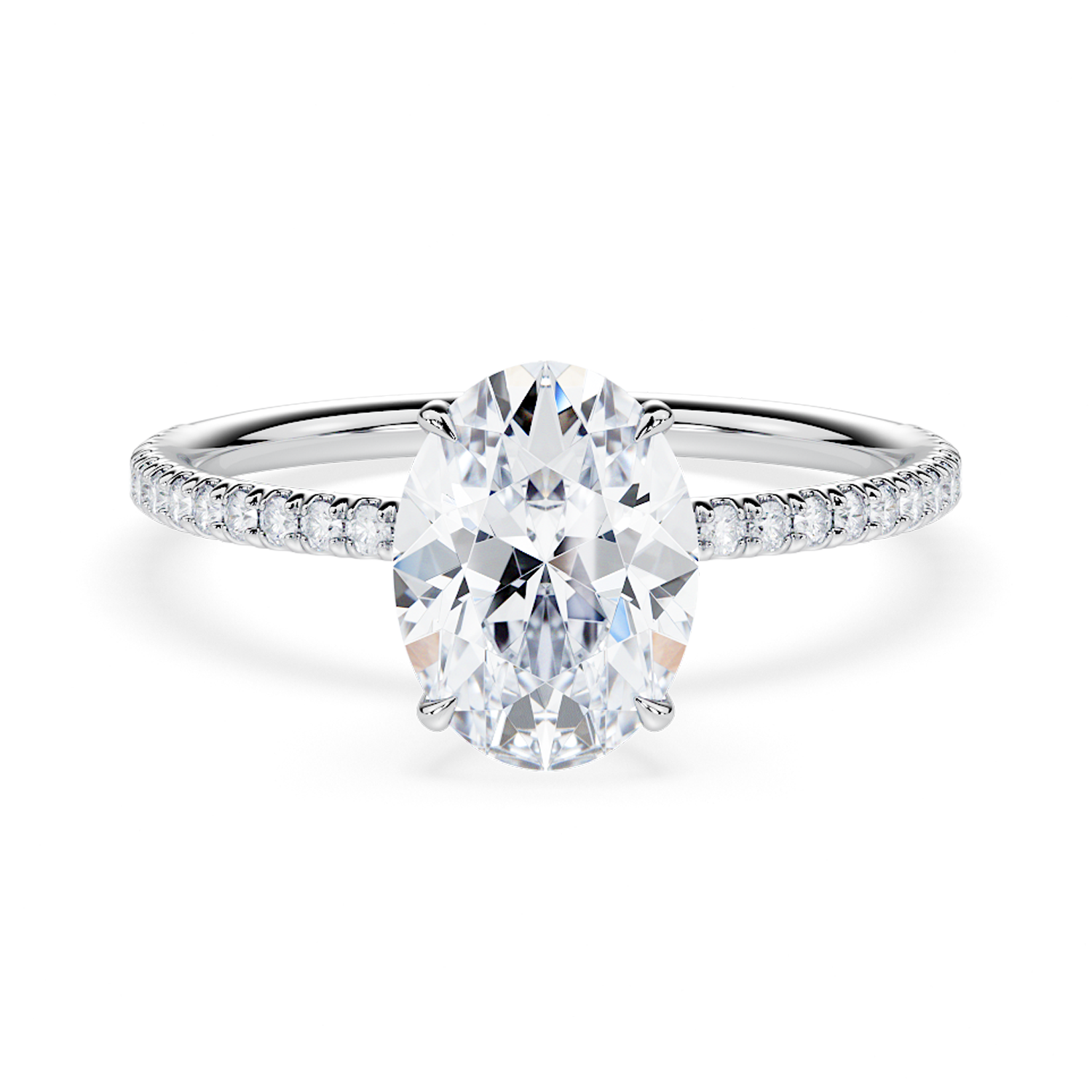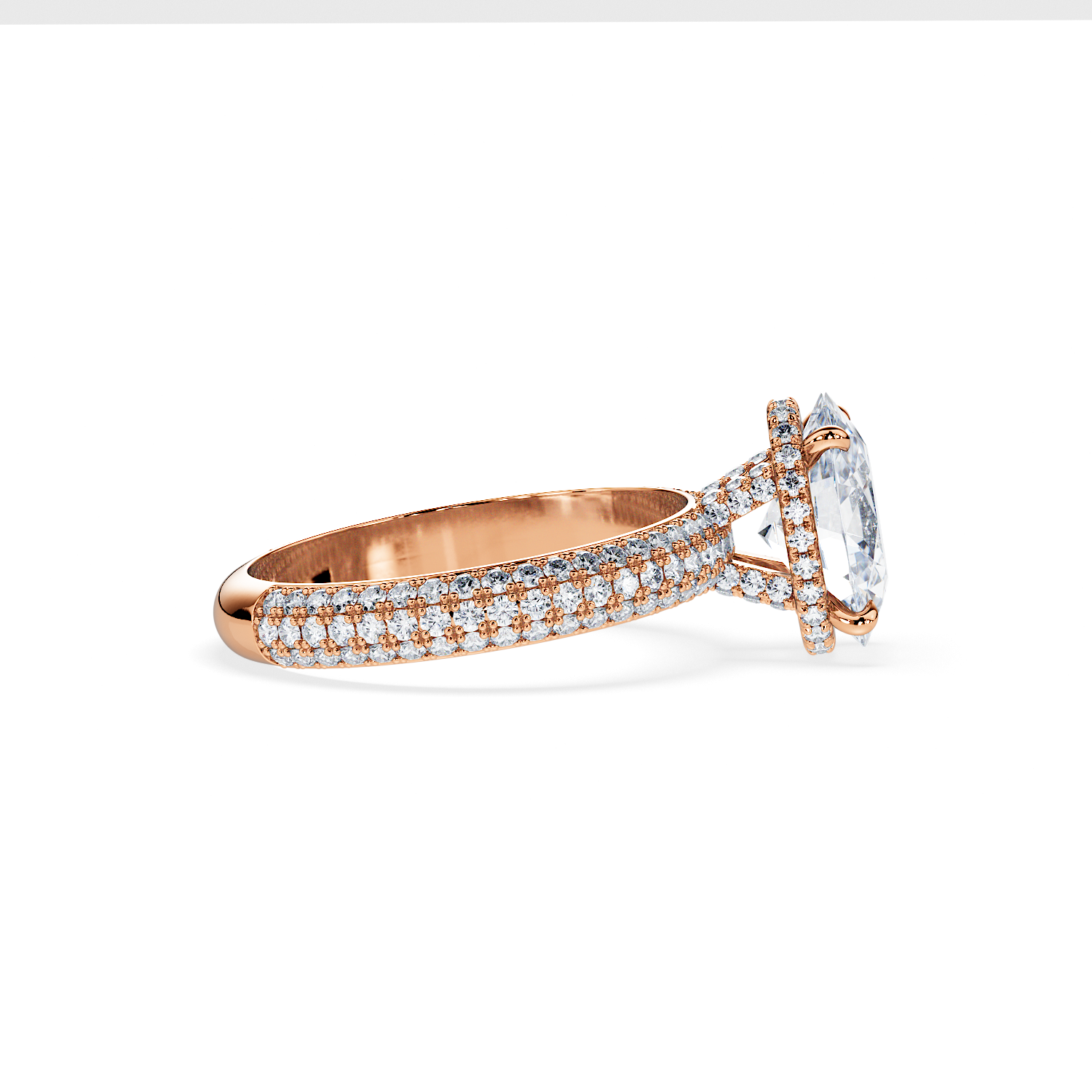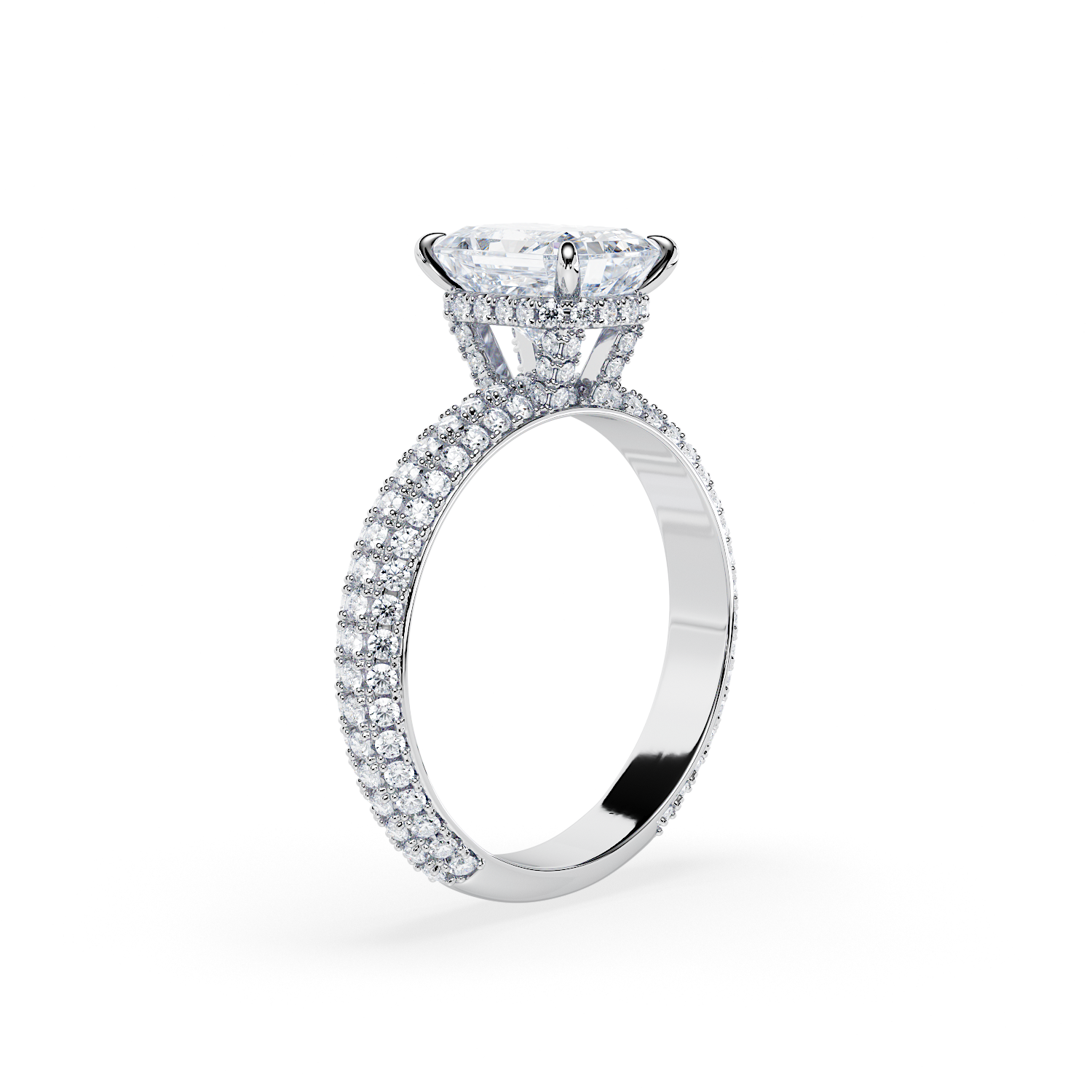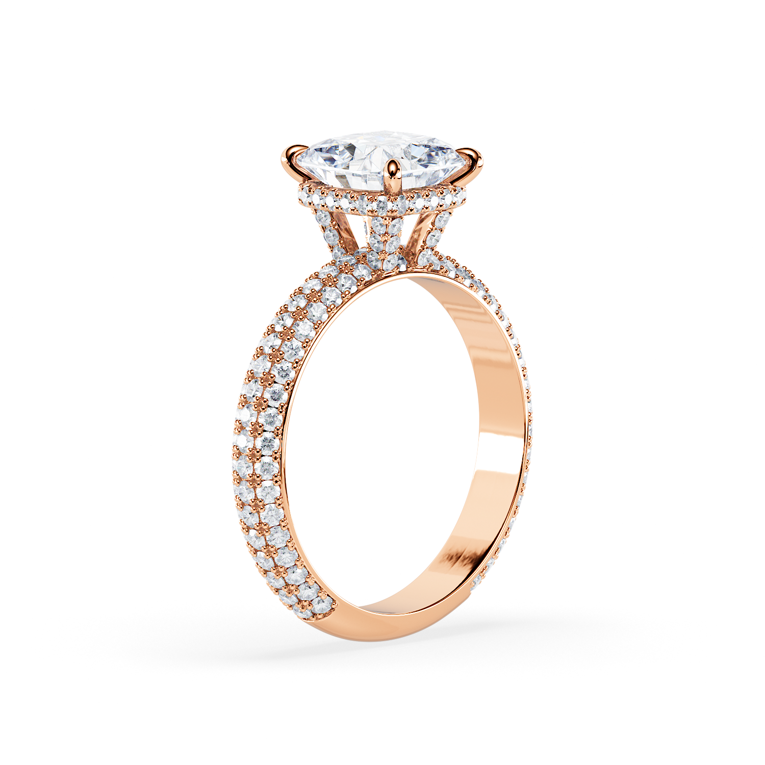 Oval Three Row Pavé with Hidden Halo and Diamond Set Prongs