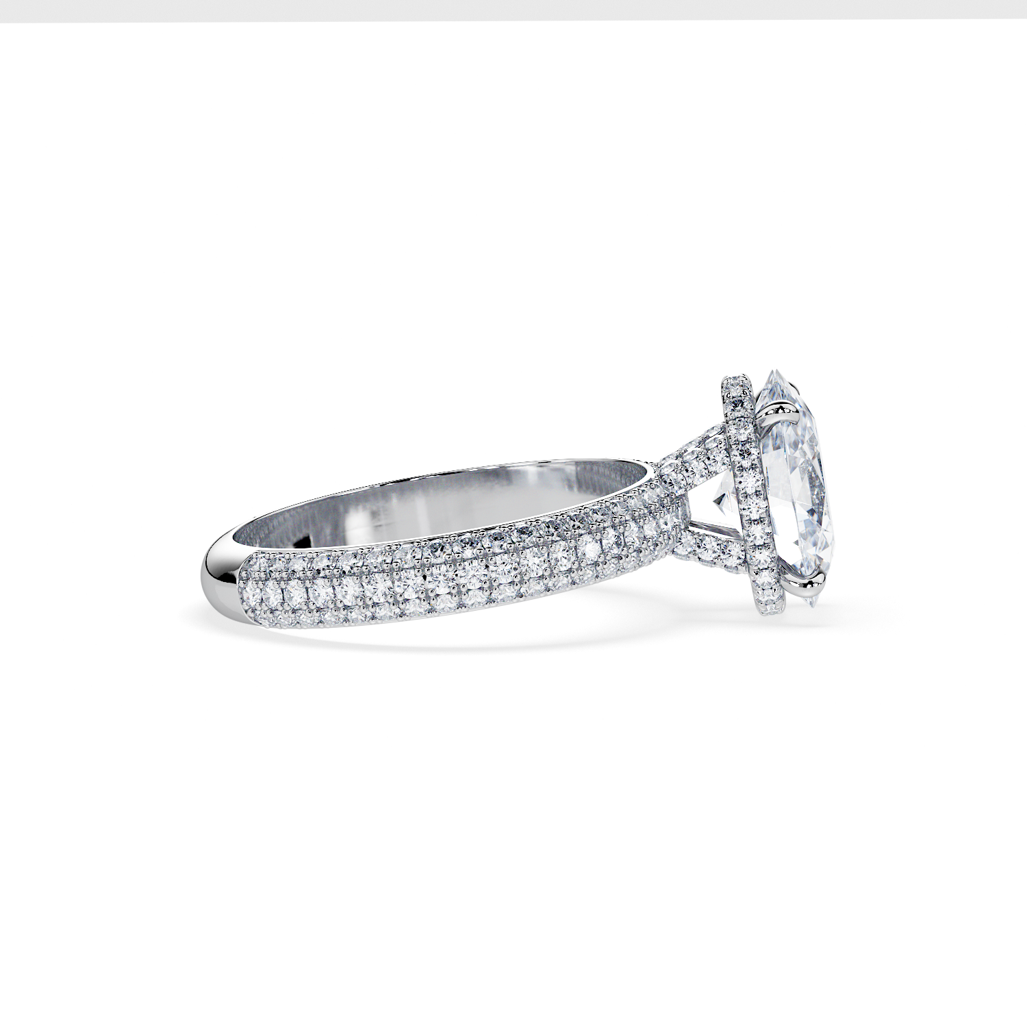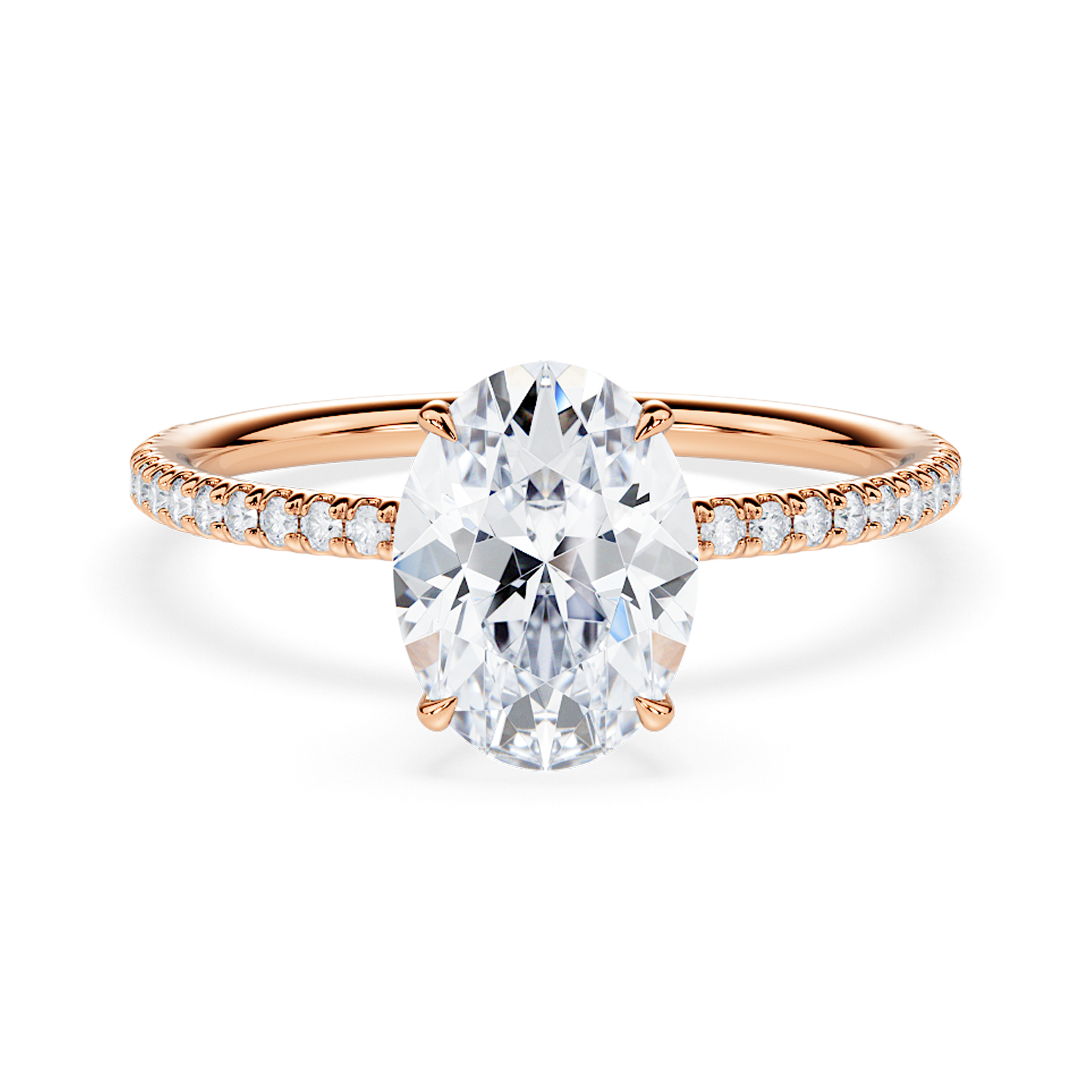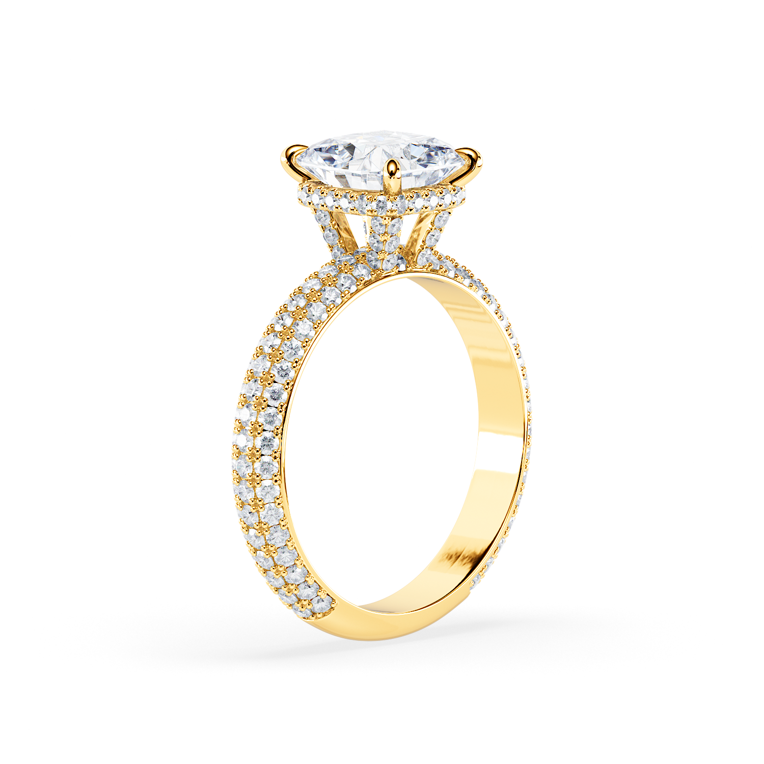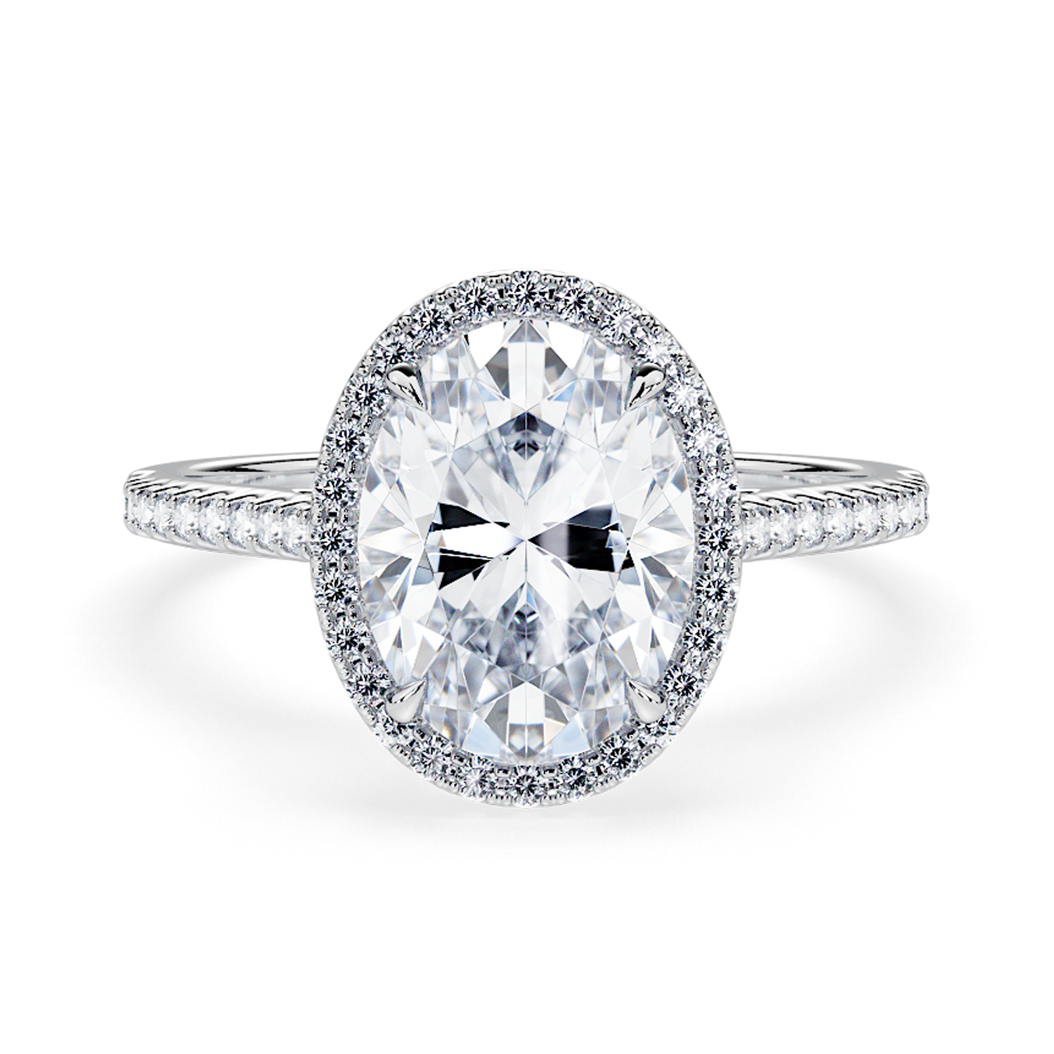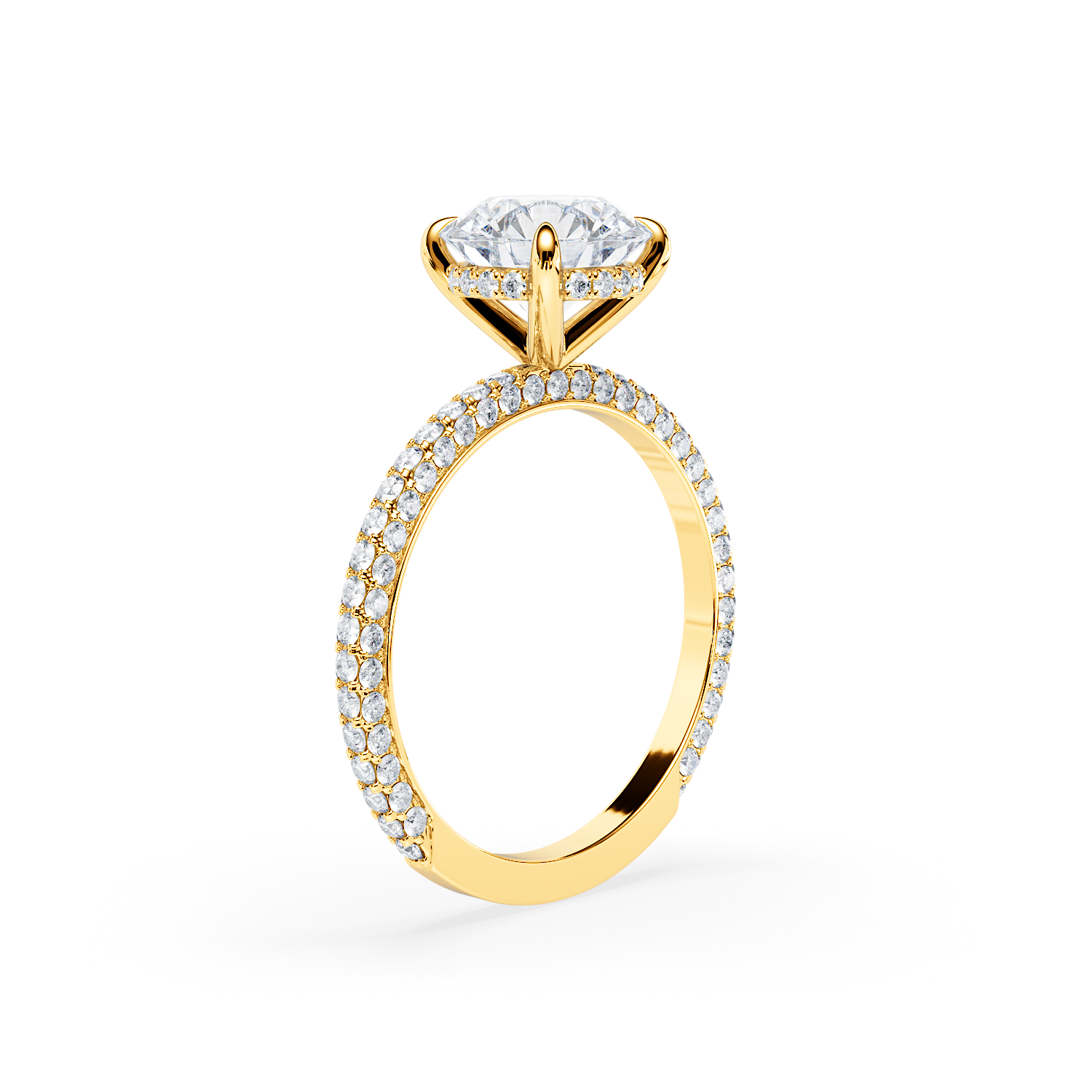 Oval Three Row Pavé with Hidden Halo and Diamond Set Prongs
