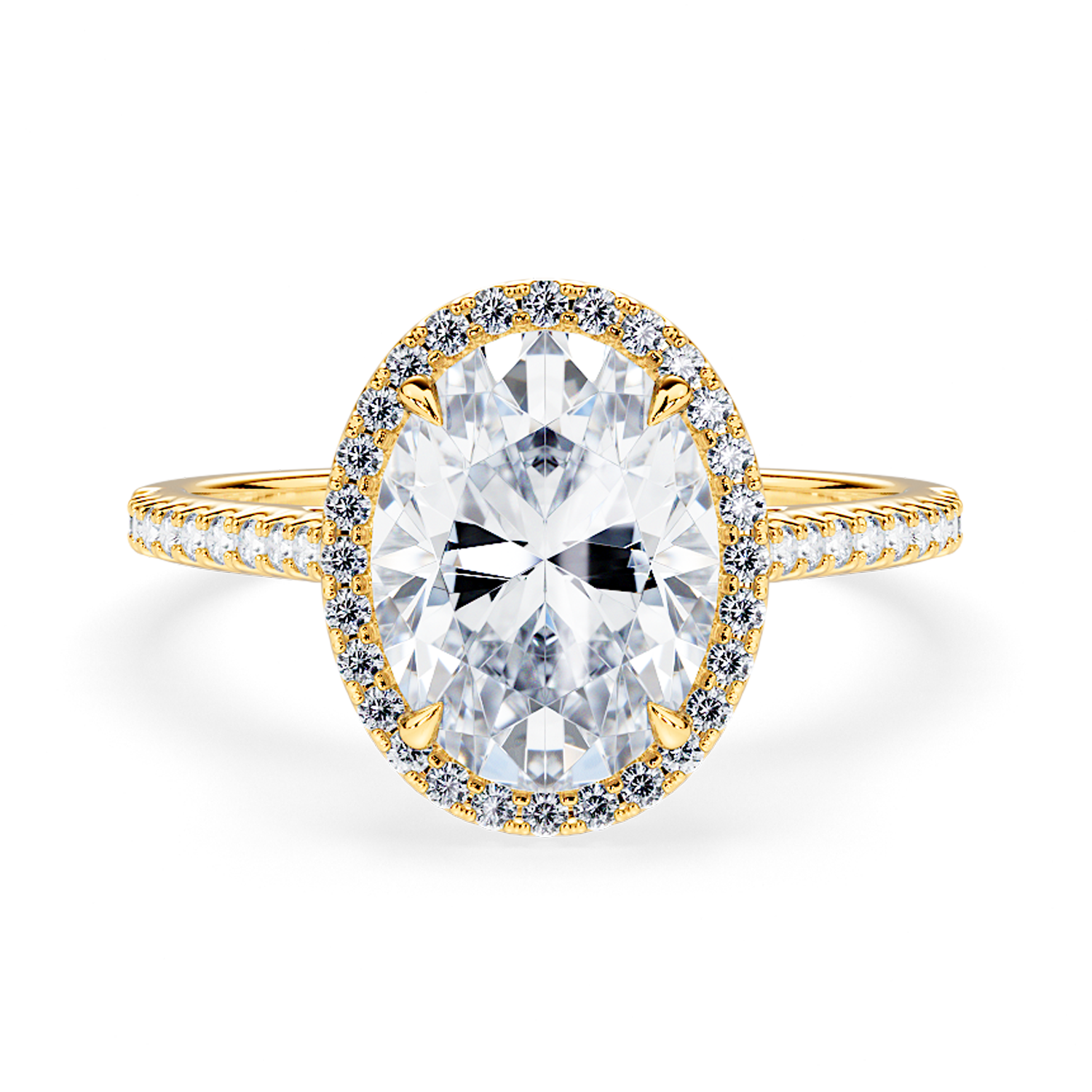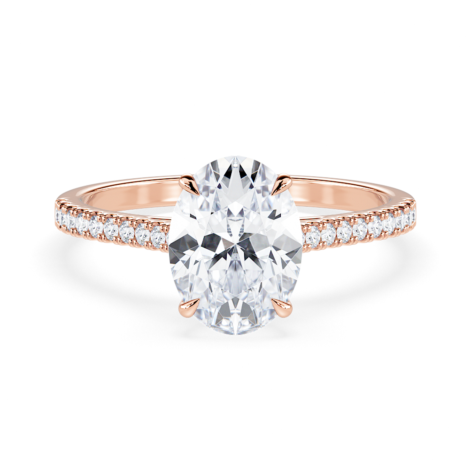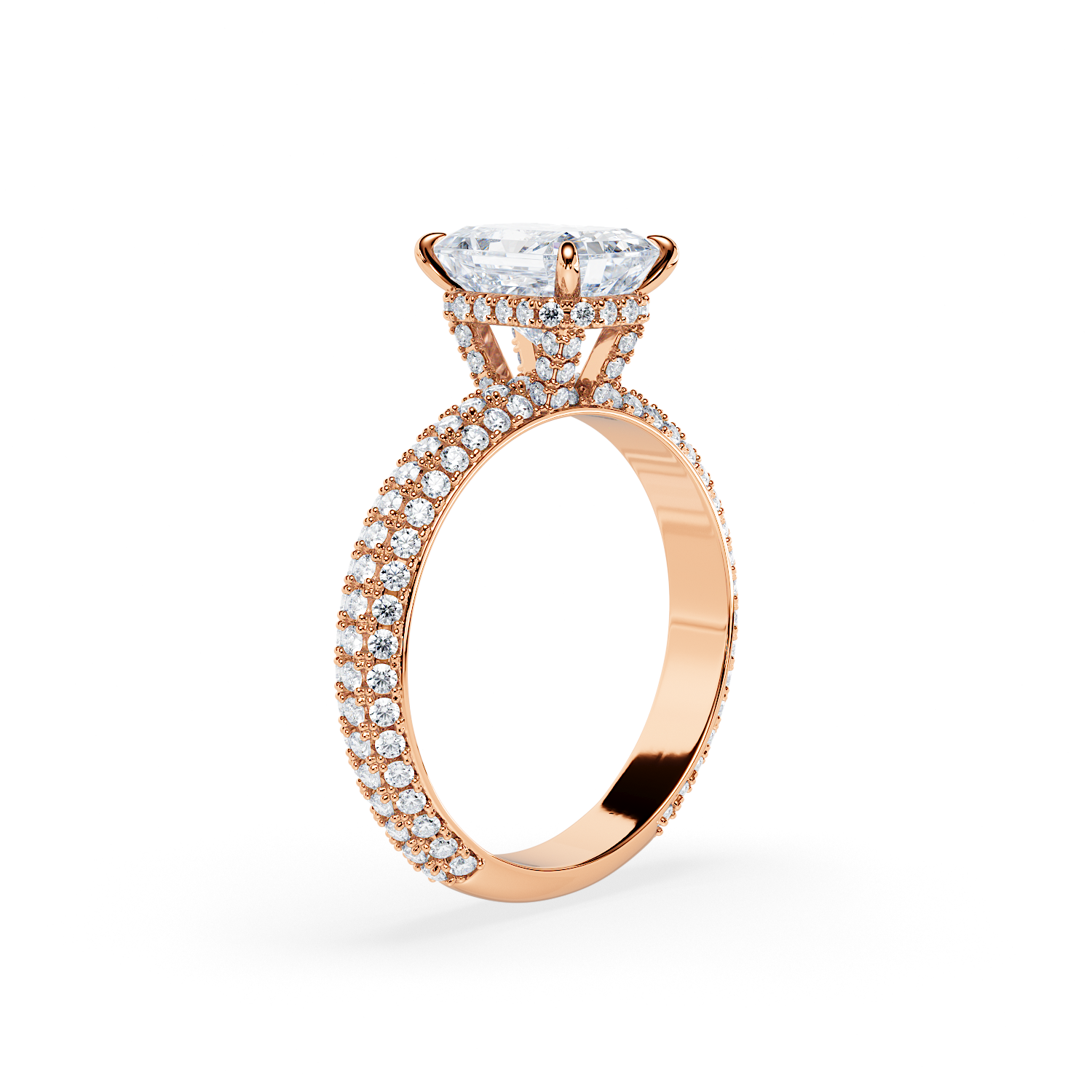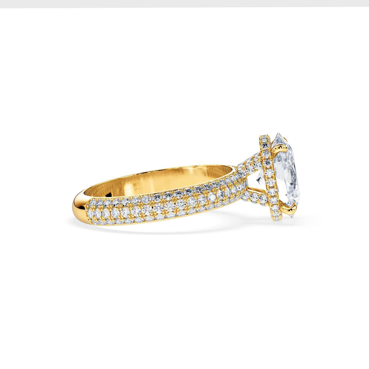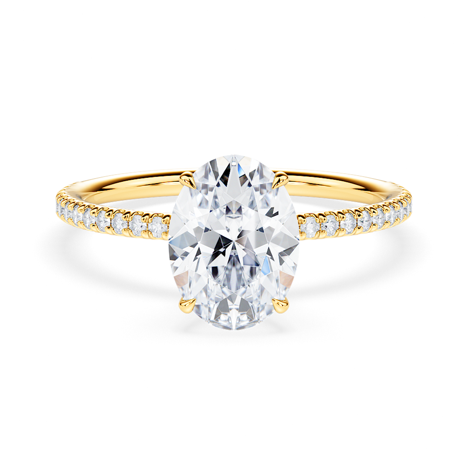 Oval Three Row Pavé with Hidden Halo and Diamond Set Prongs