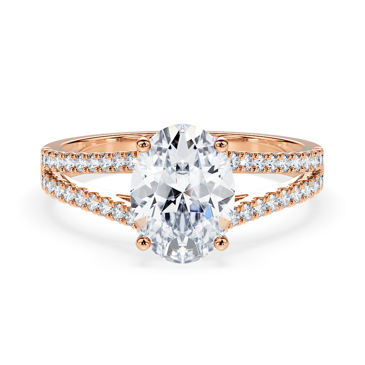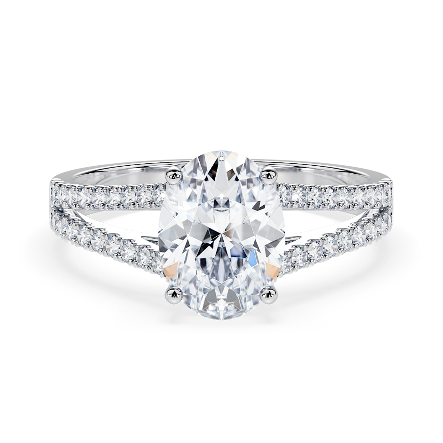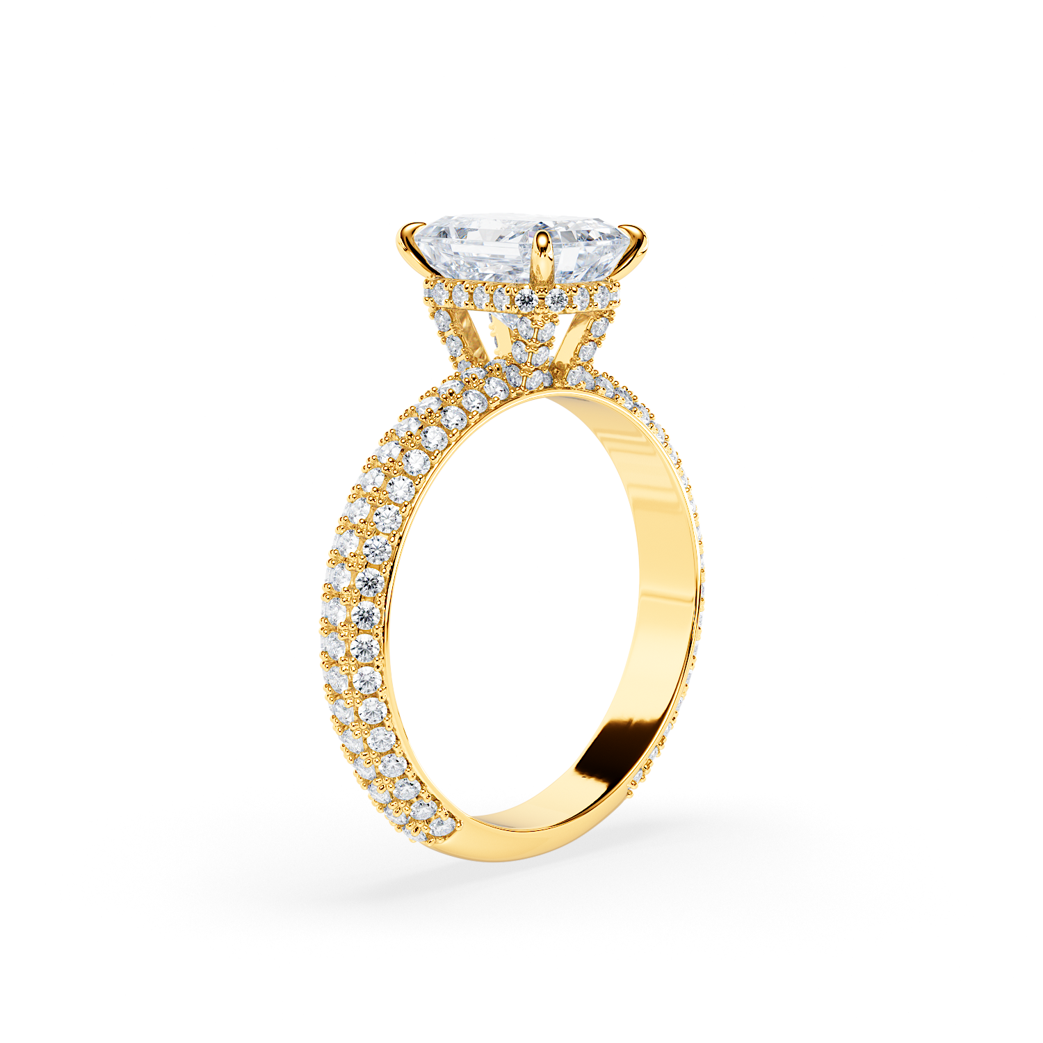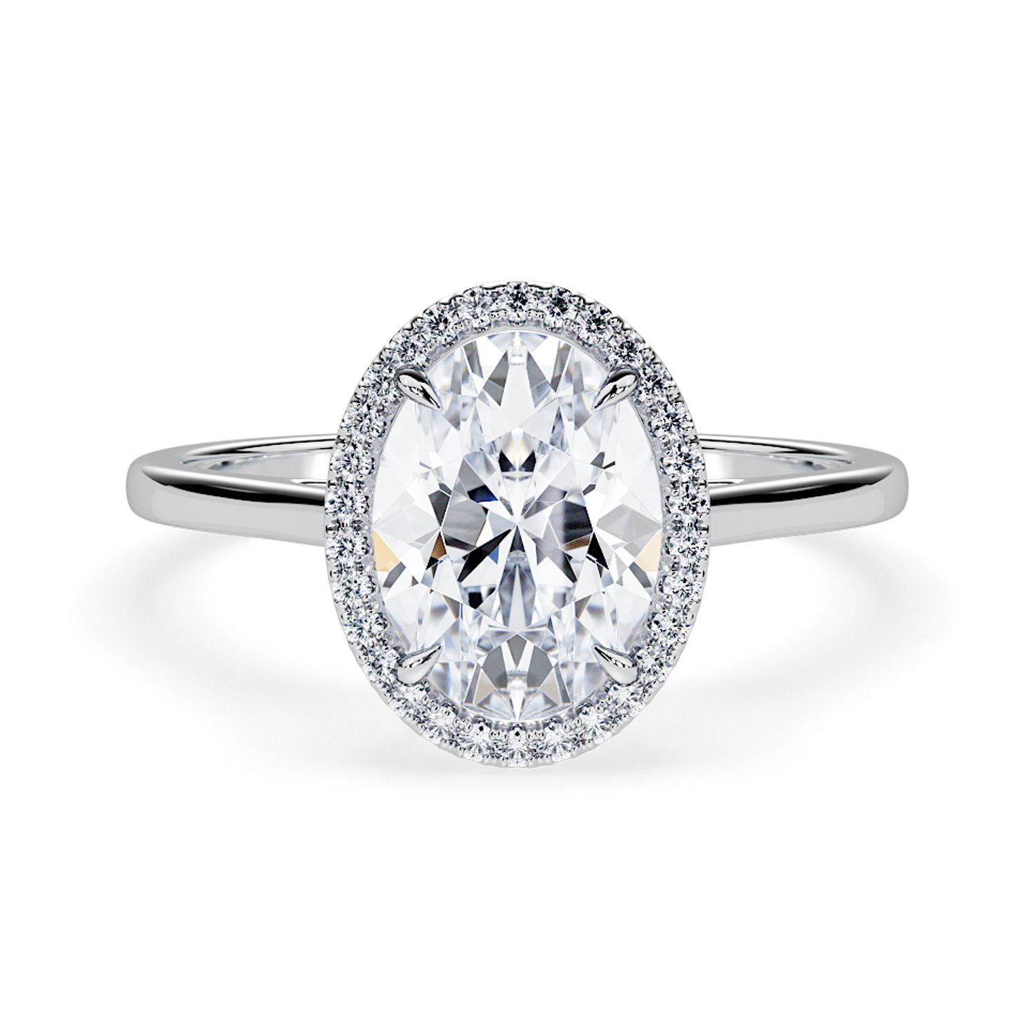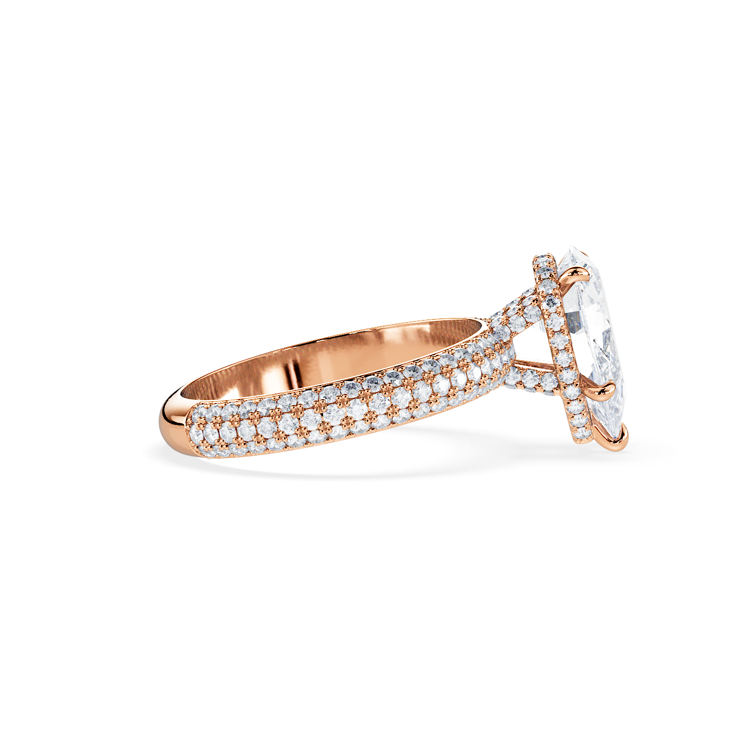 Oval Three Row Pavé with Hidden Halo and Diamond Set Prongs