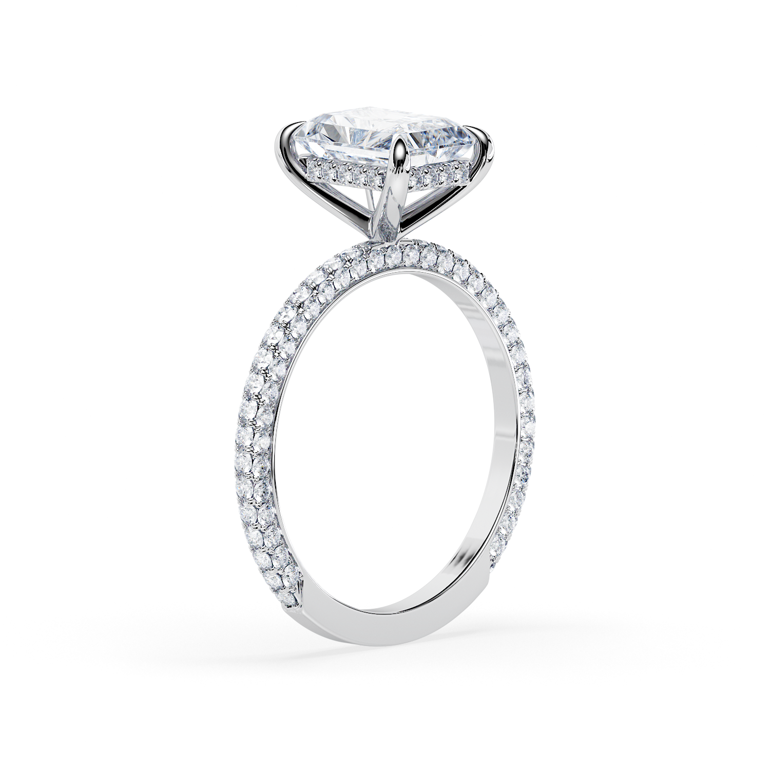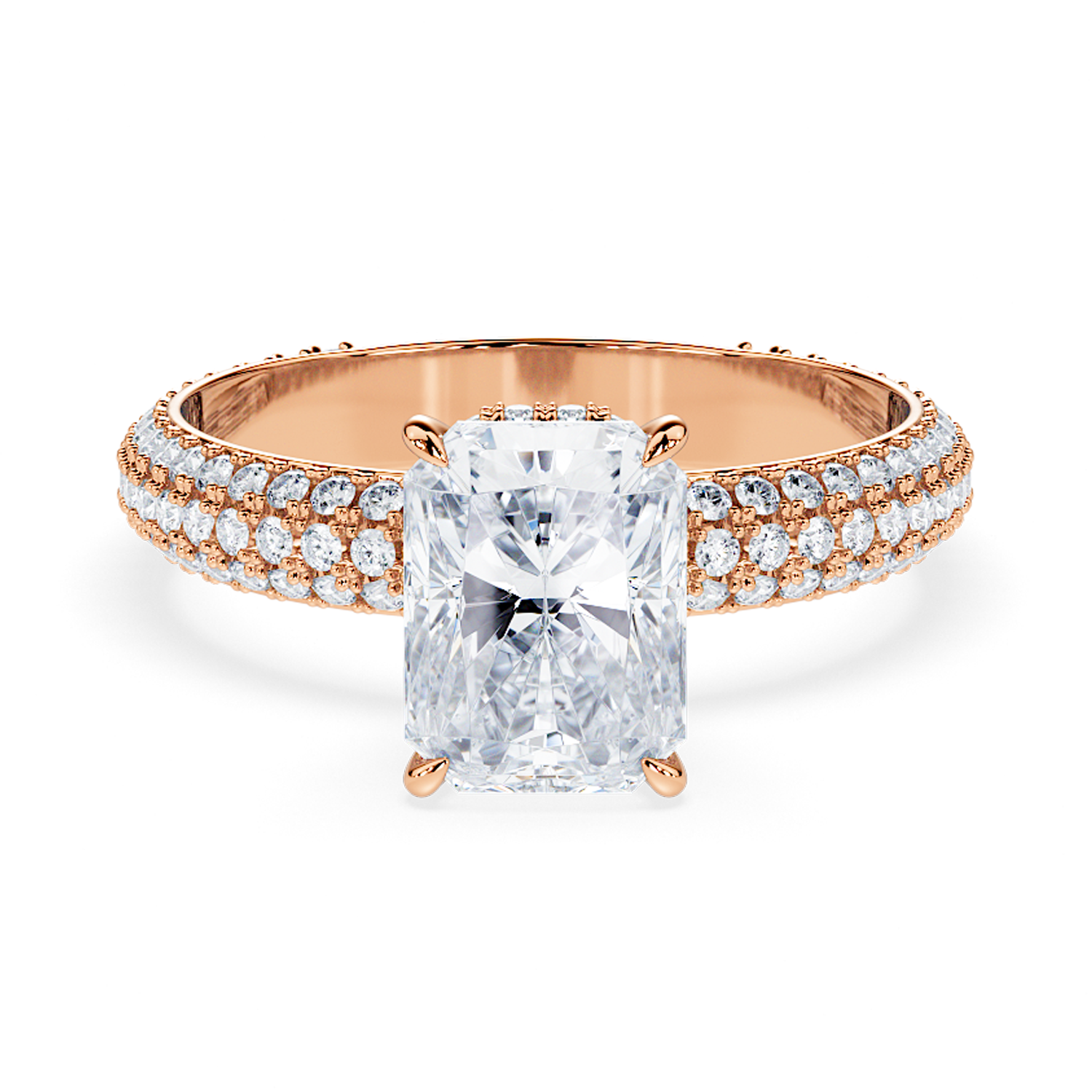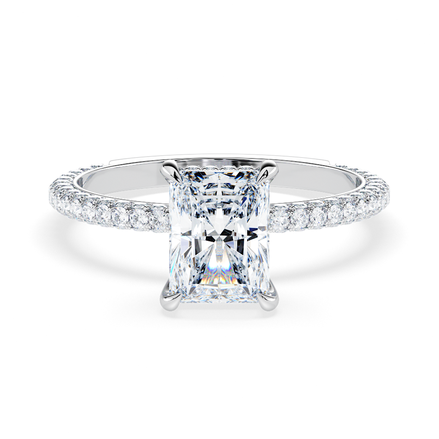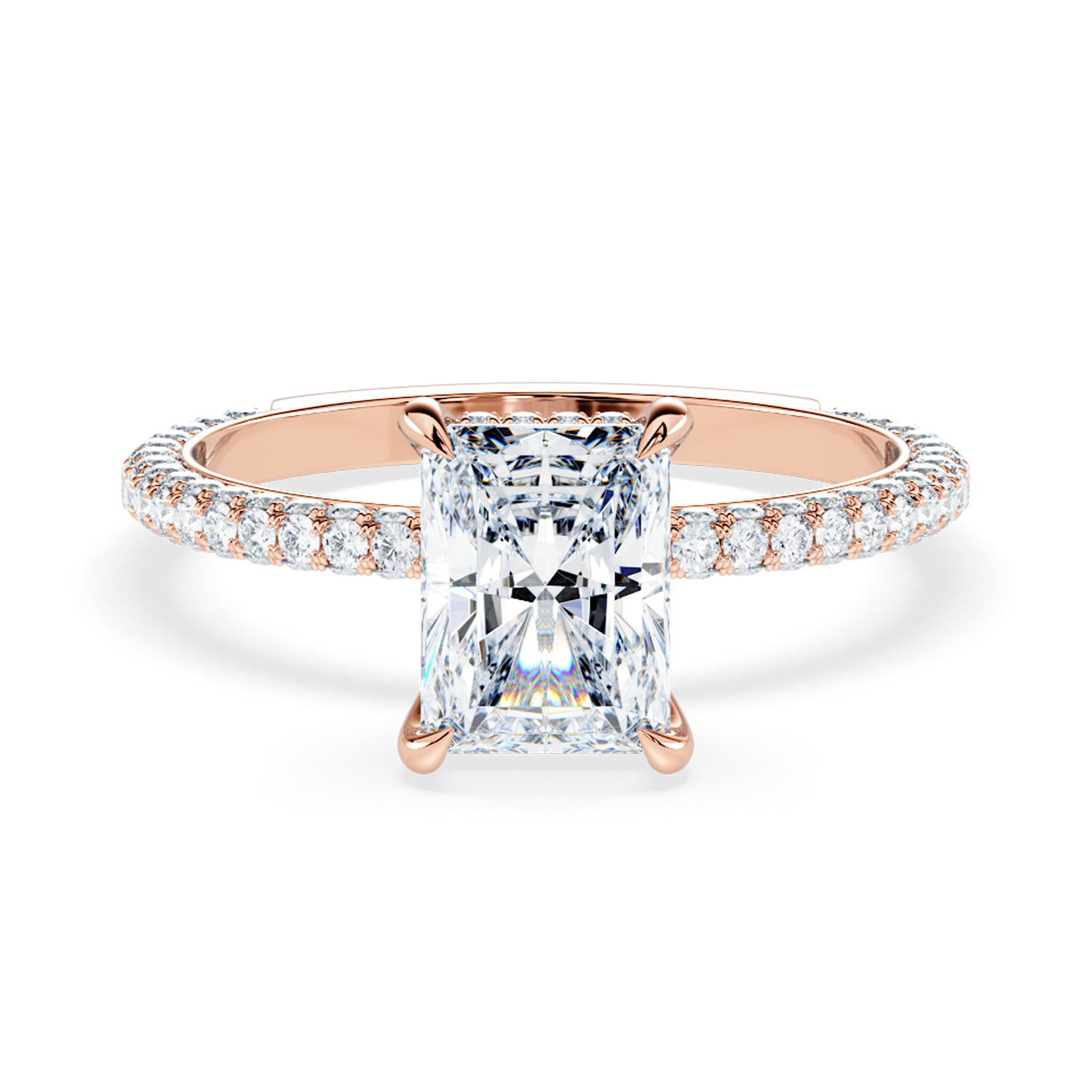Radiant Three Row Pavé with Hidden Halo and Diamond Set Prongs