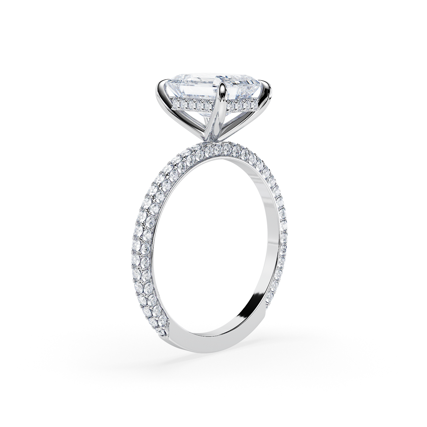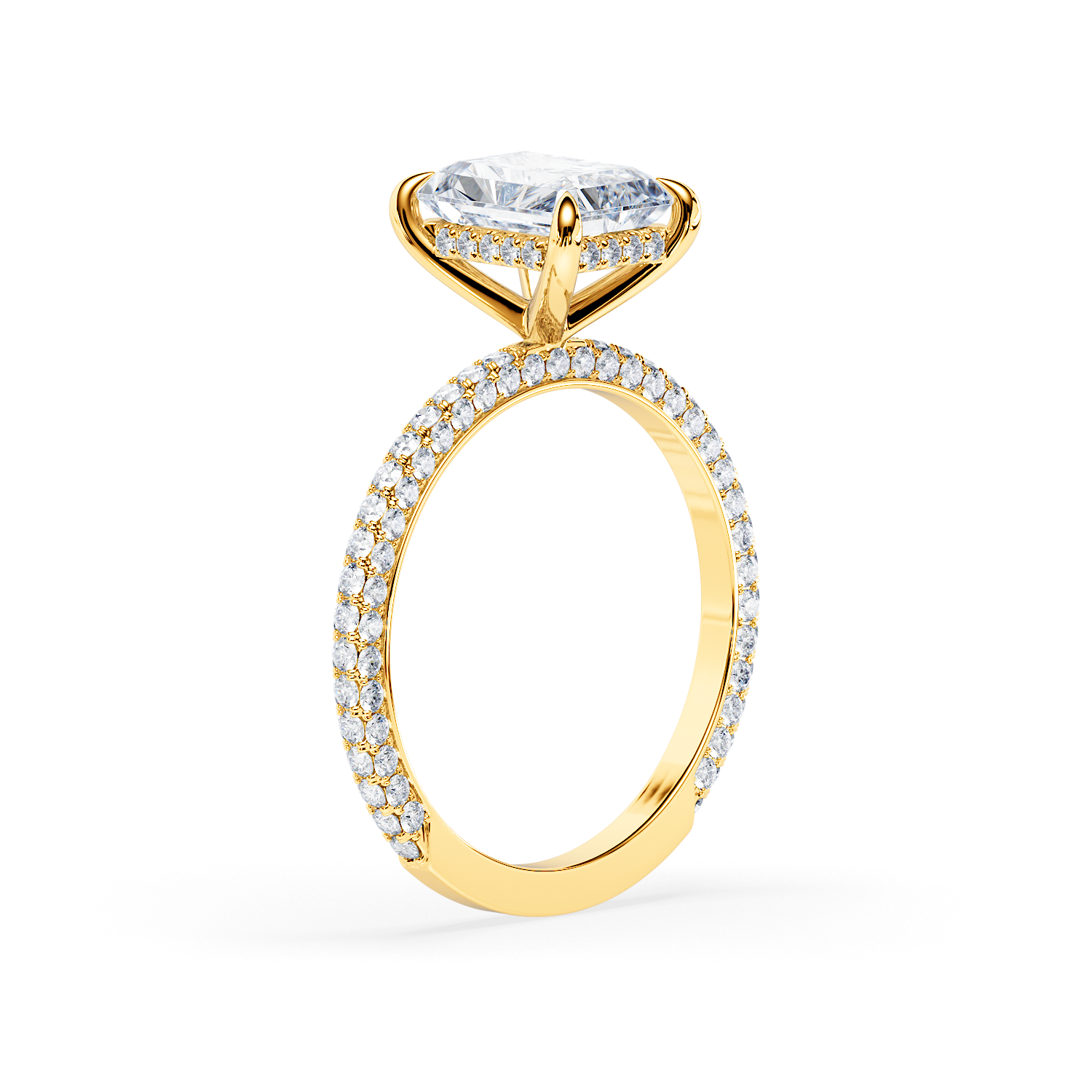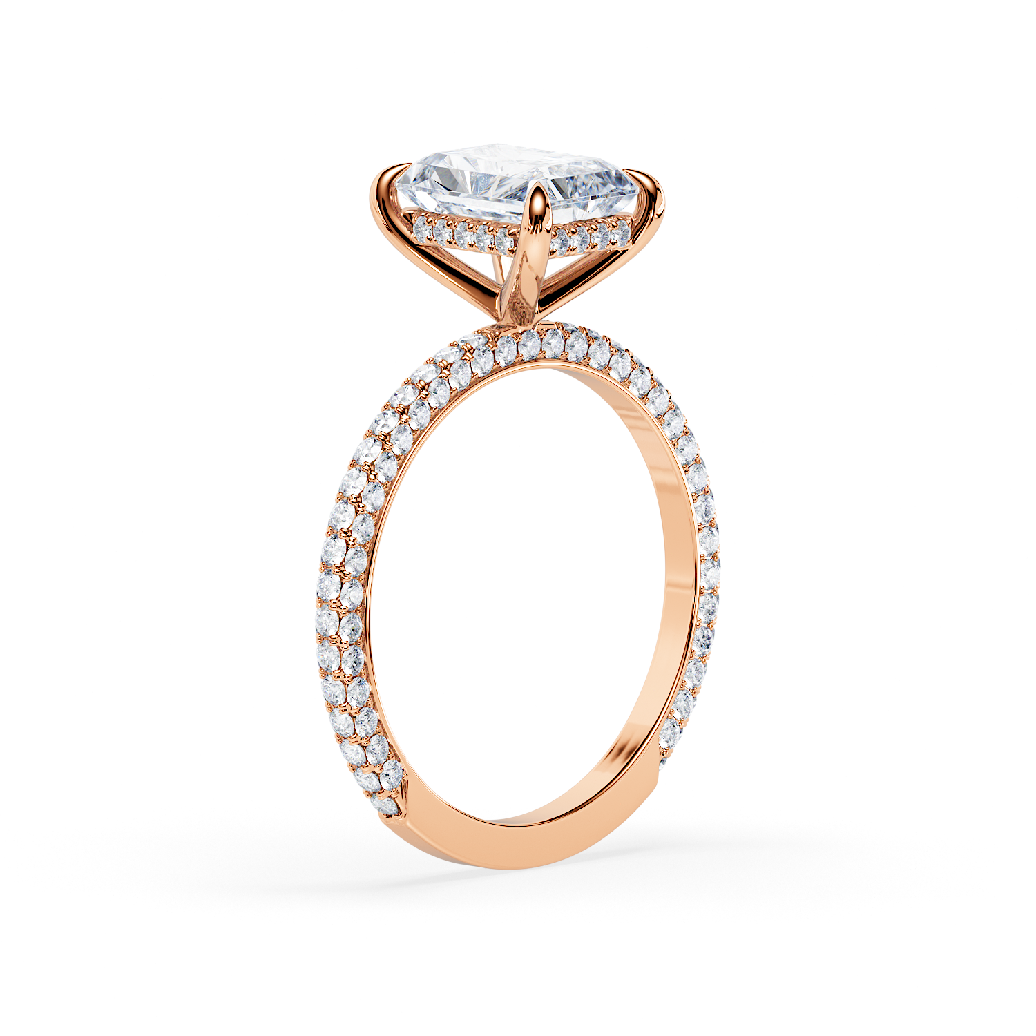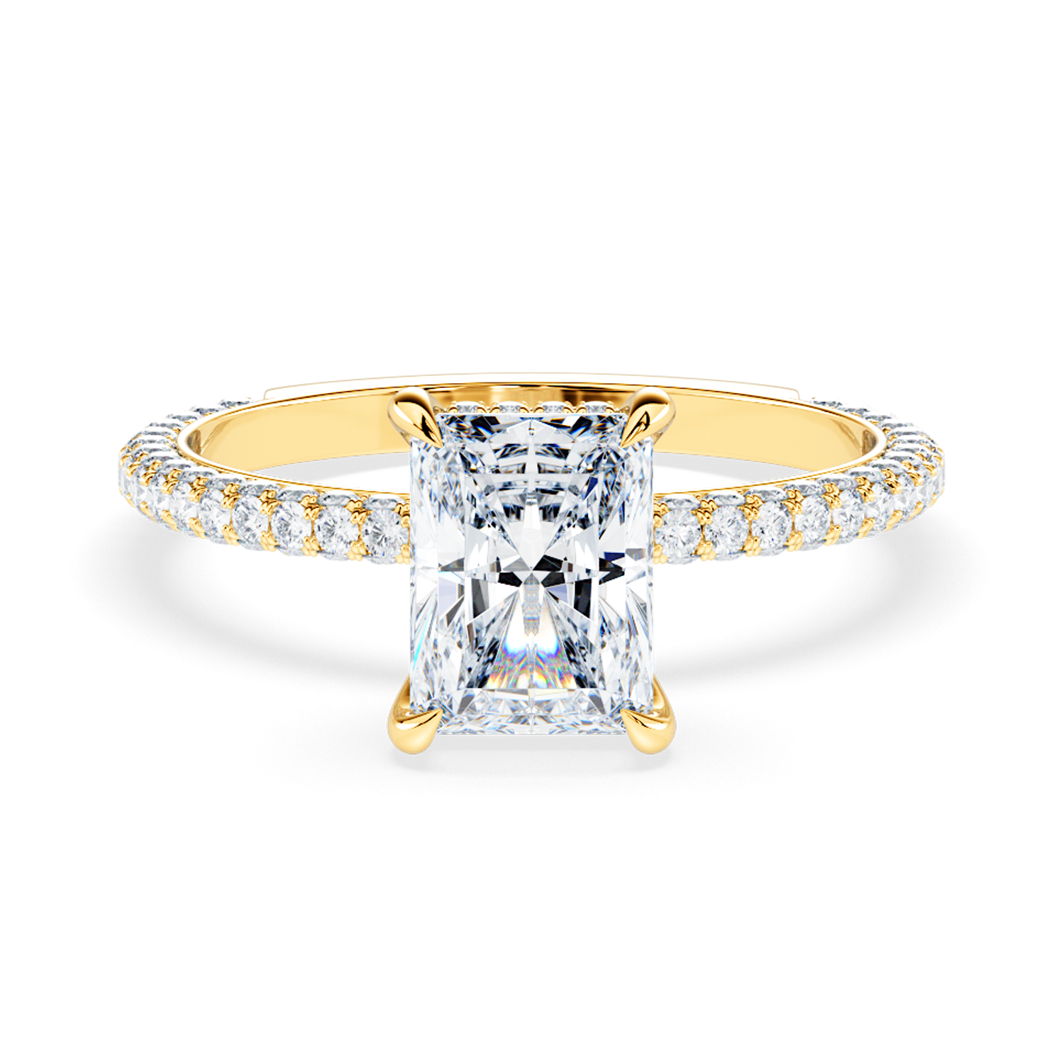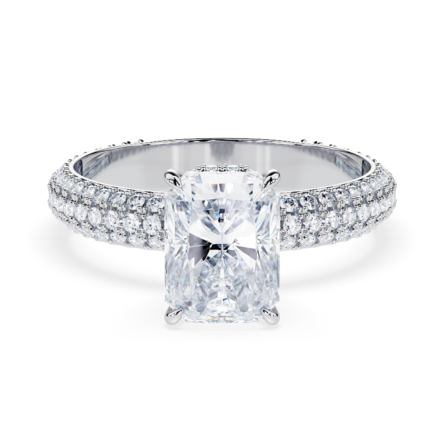 Radiant Three Row Pavé with Hidden Halo and Diamond Set Prongs