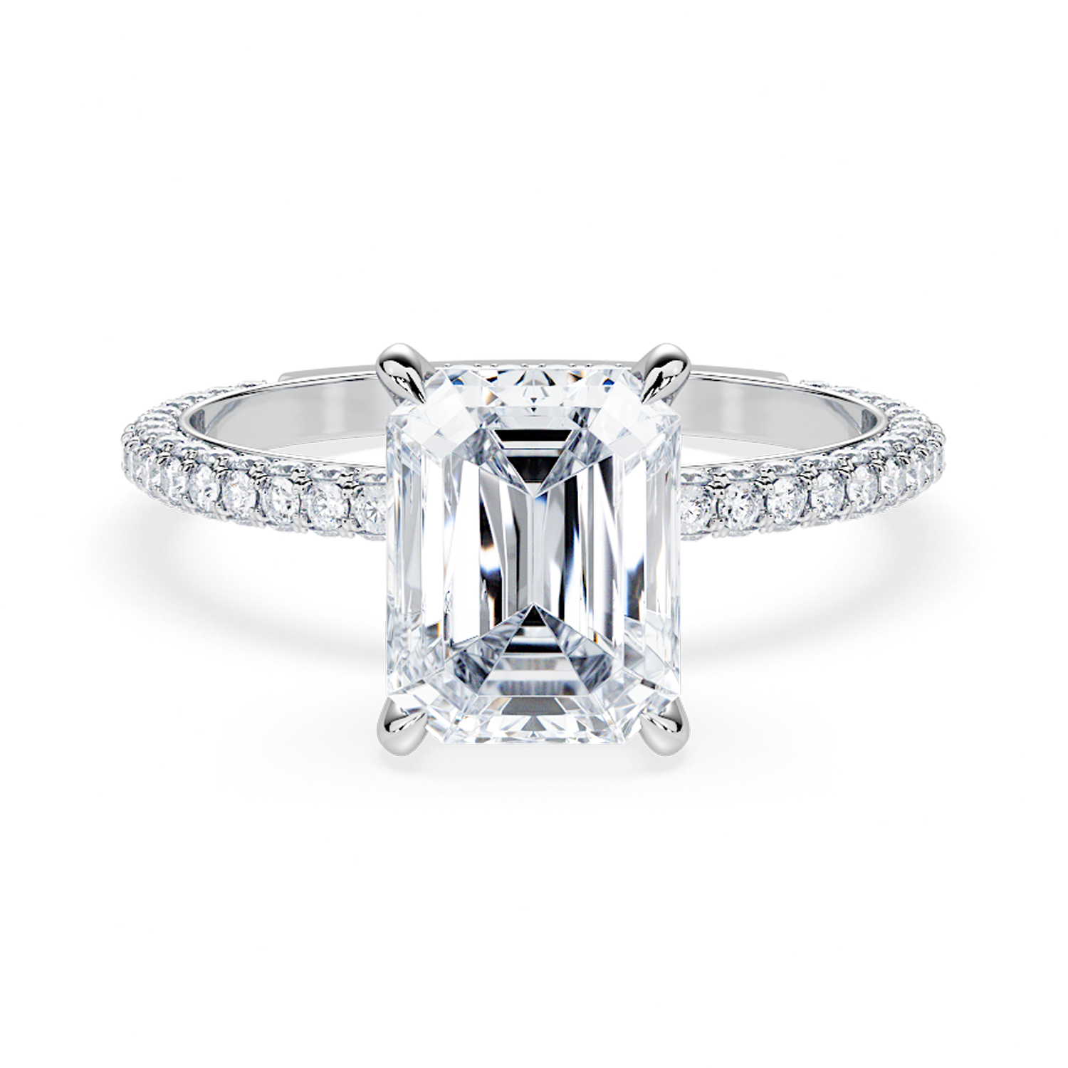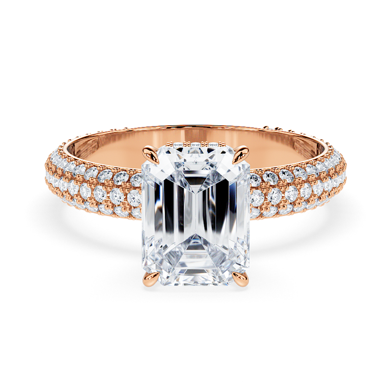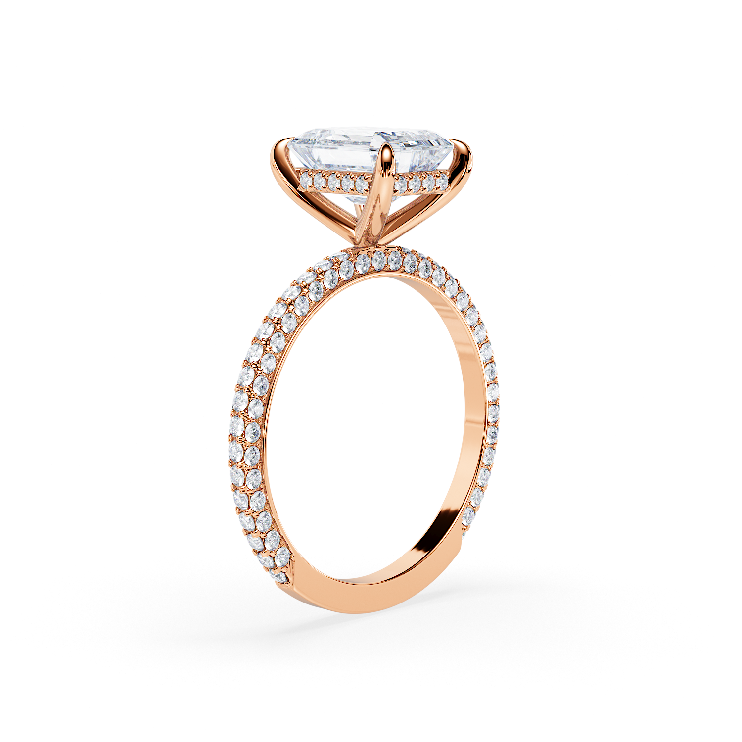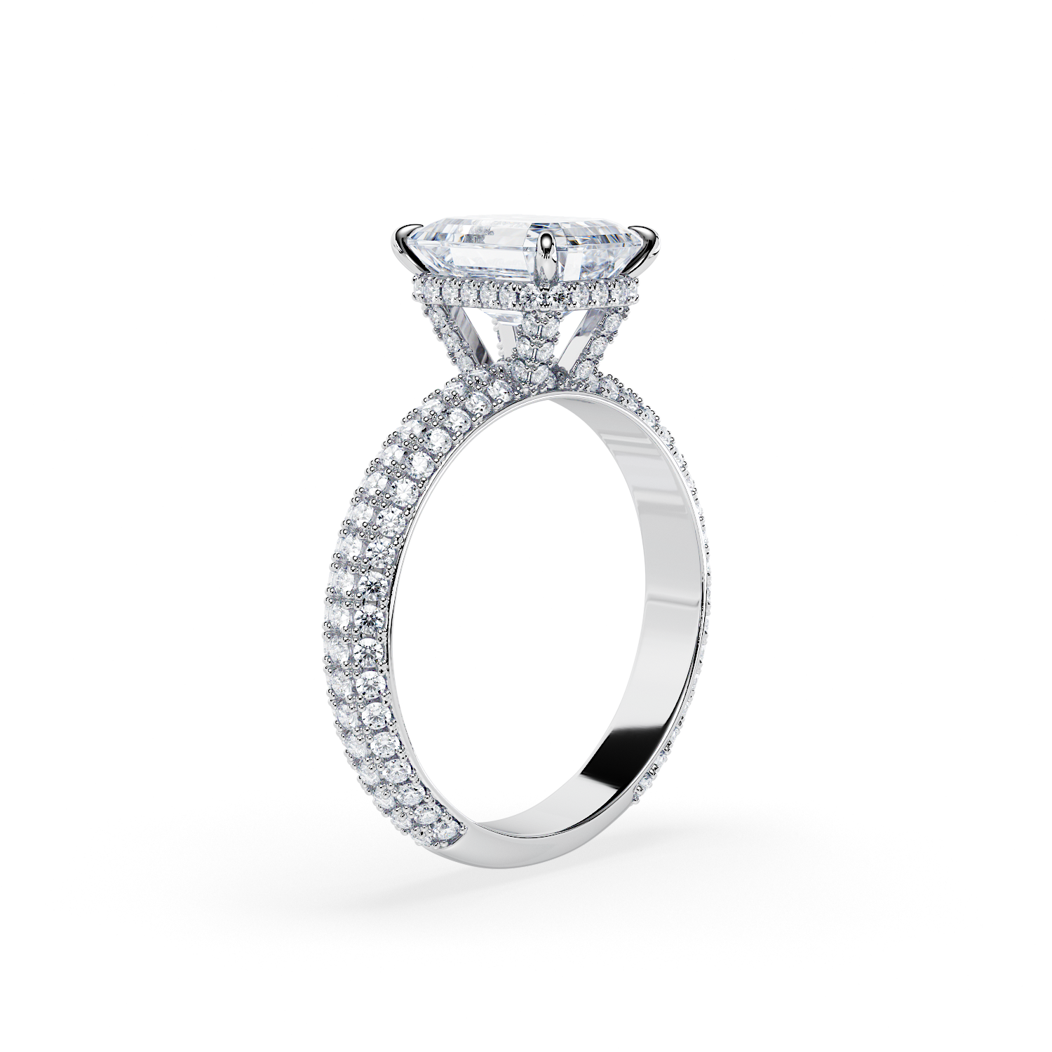 Radiant Three Row Pavé with Hidden Halo and Diamond Set Prongs