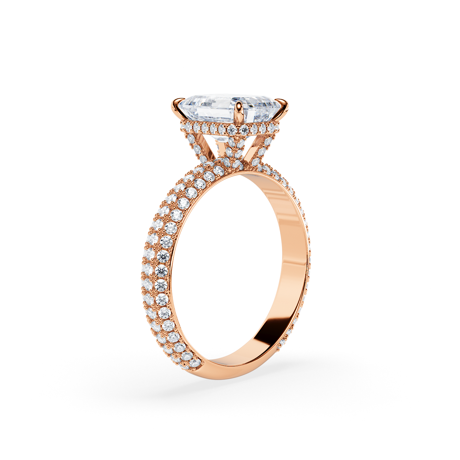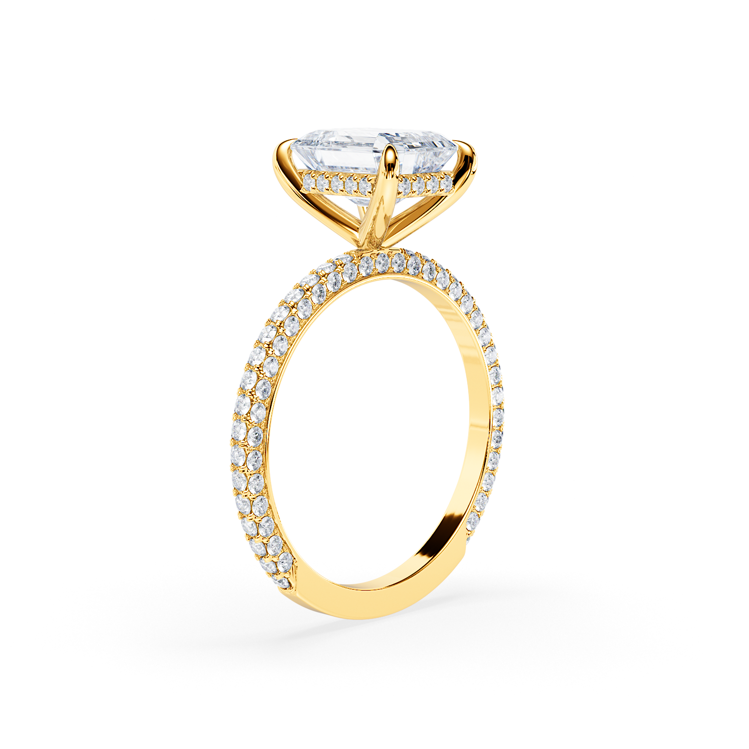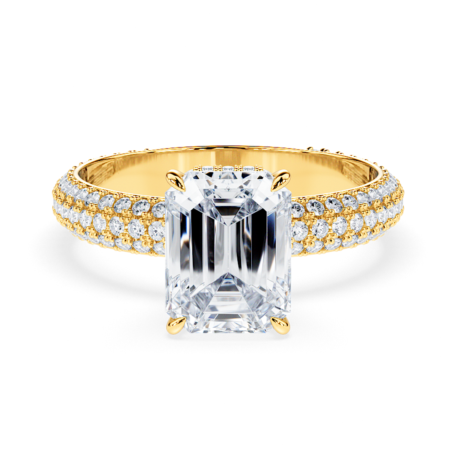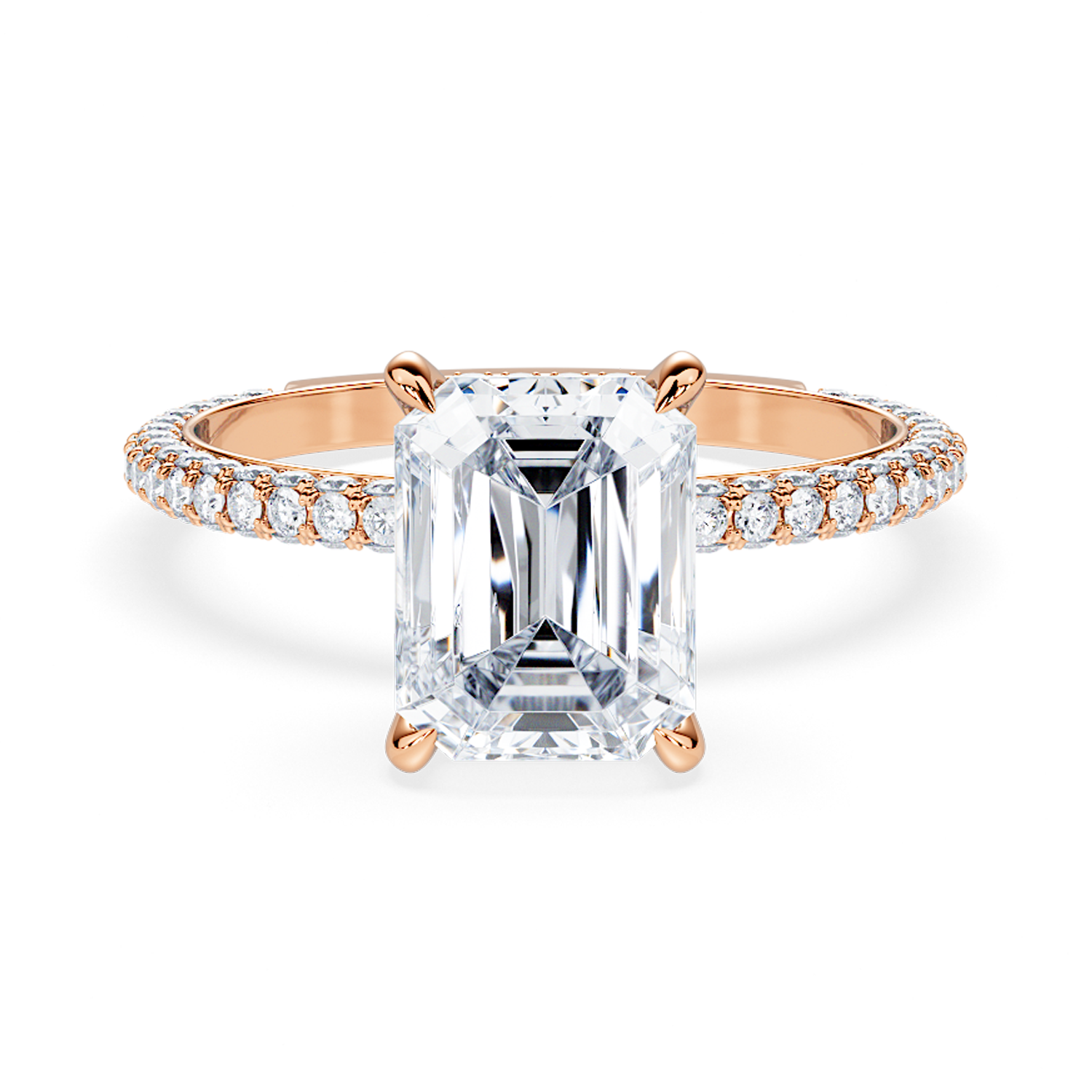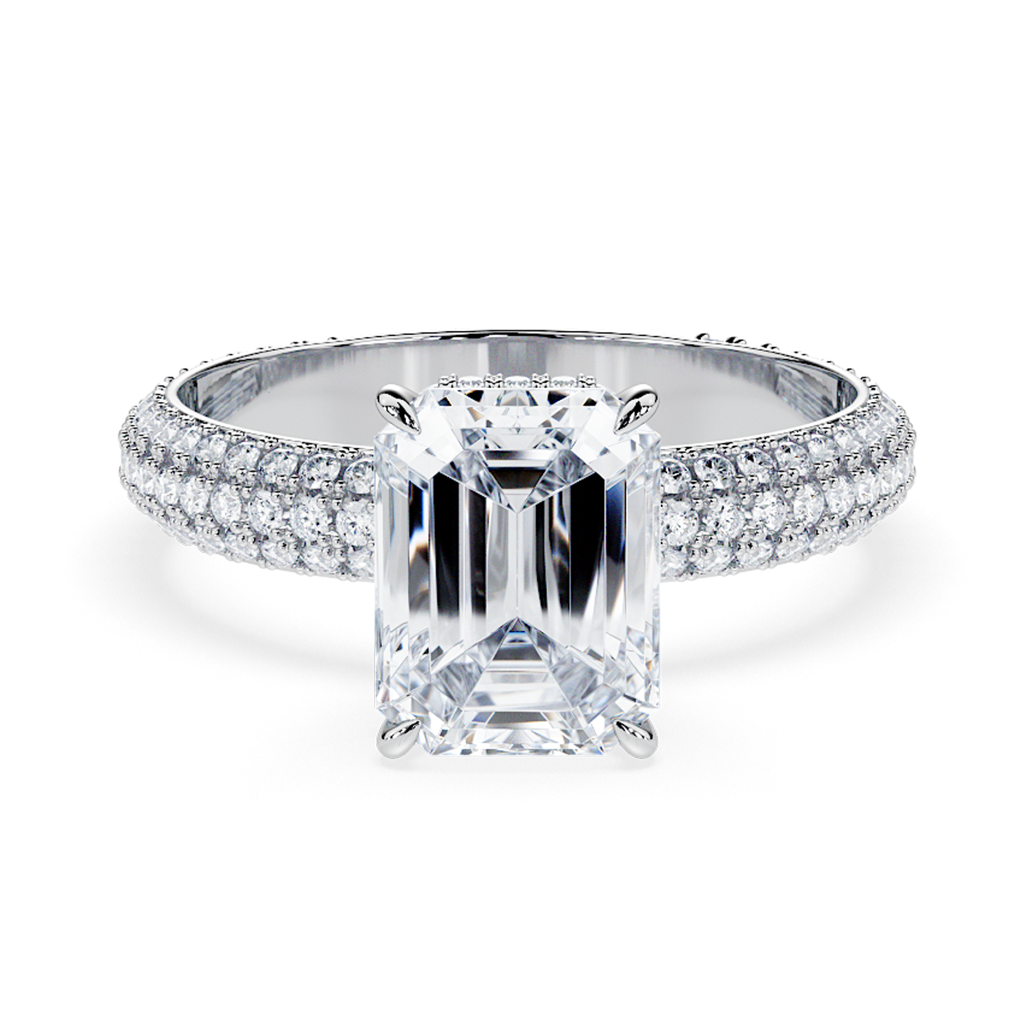 Radiant Three Row Pavé with Hidden Halo and Diamond Set Prongs