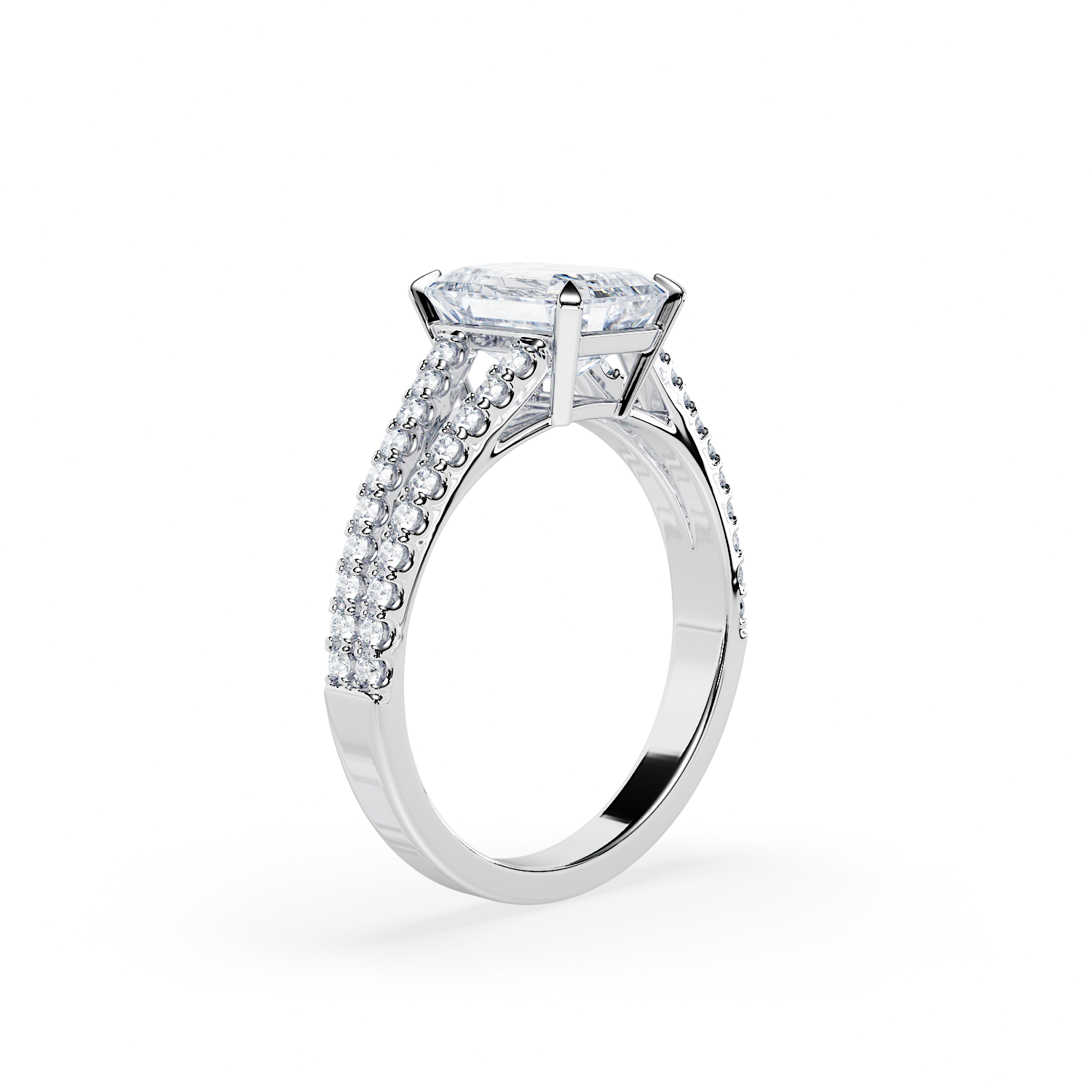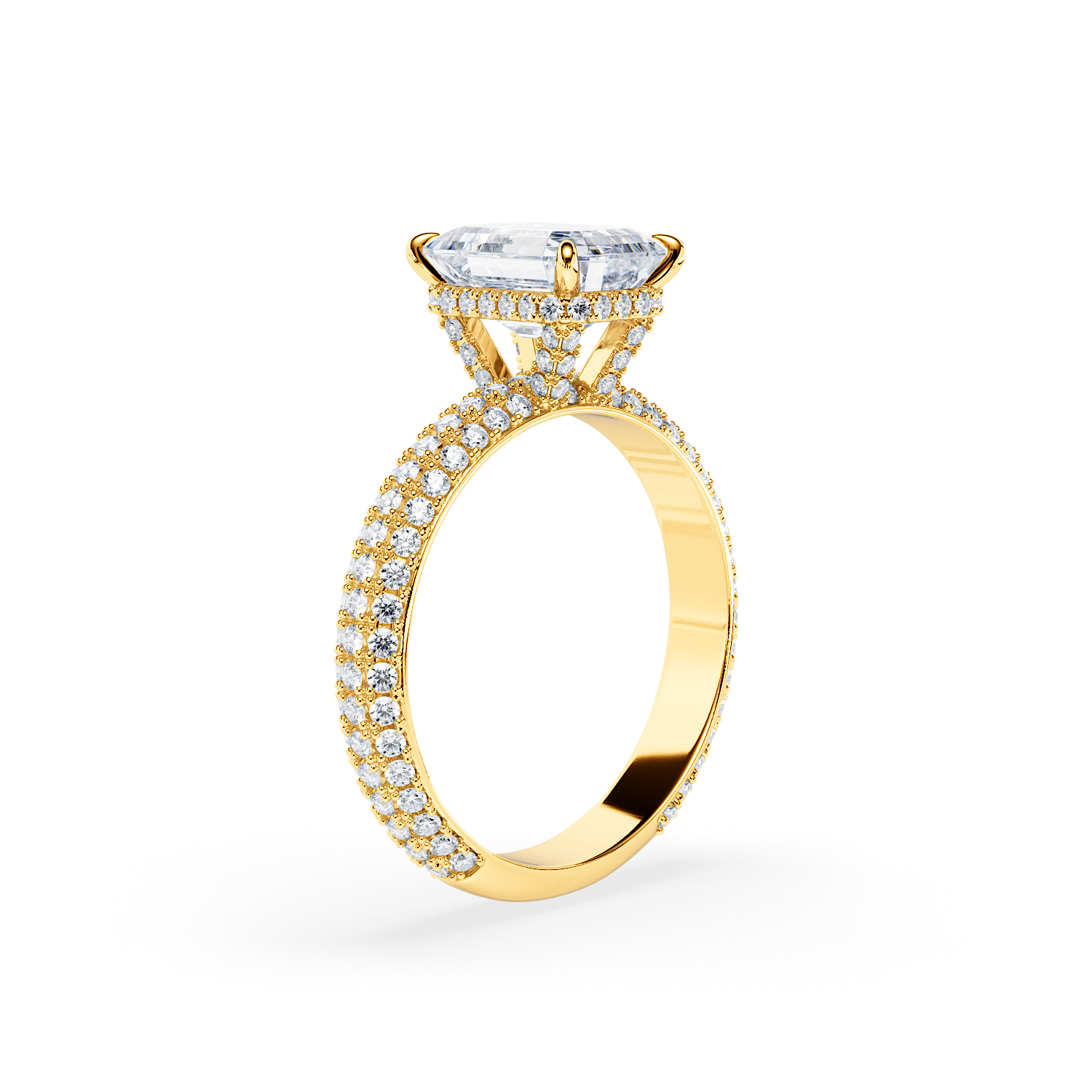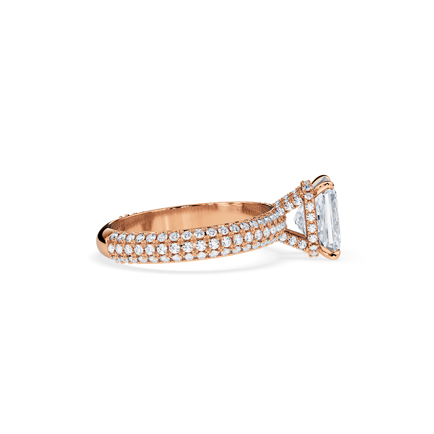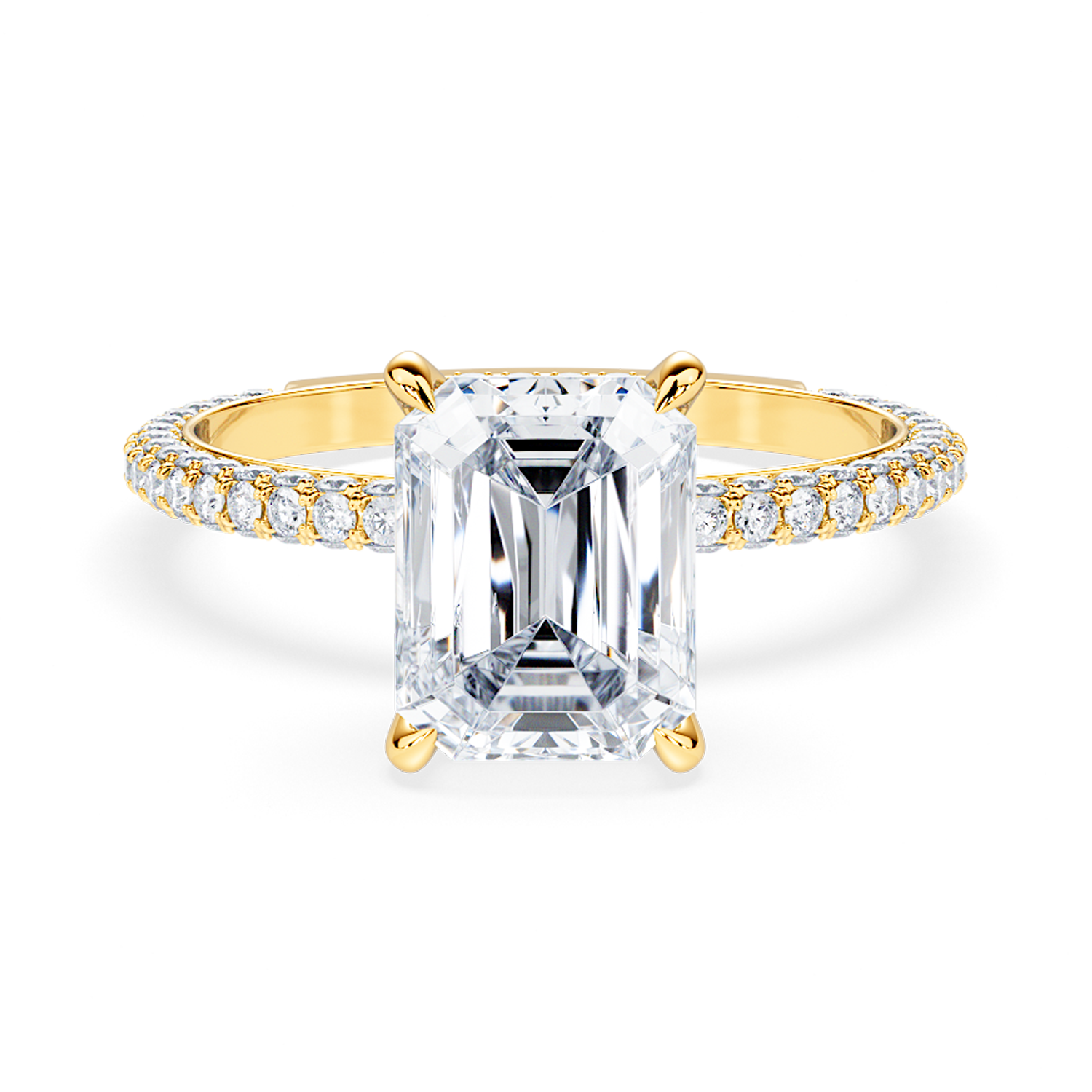 Radiant Three Row Pavé with Hidden Halo and Diamond Set Prongs