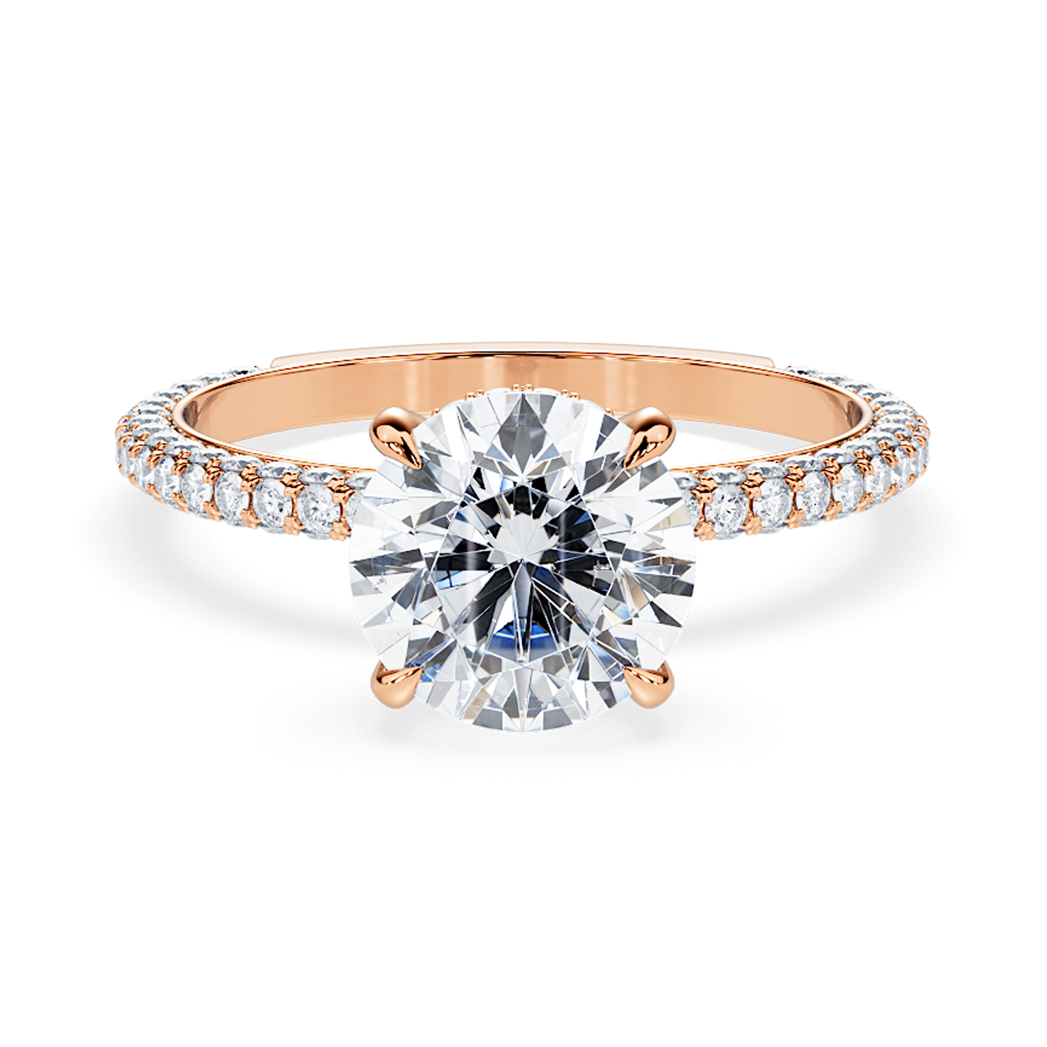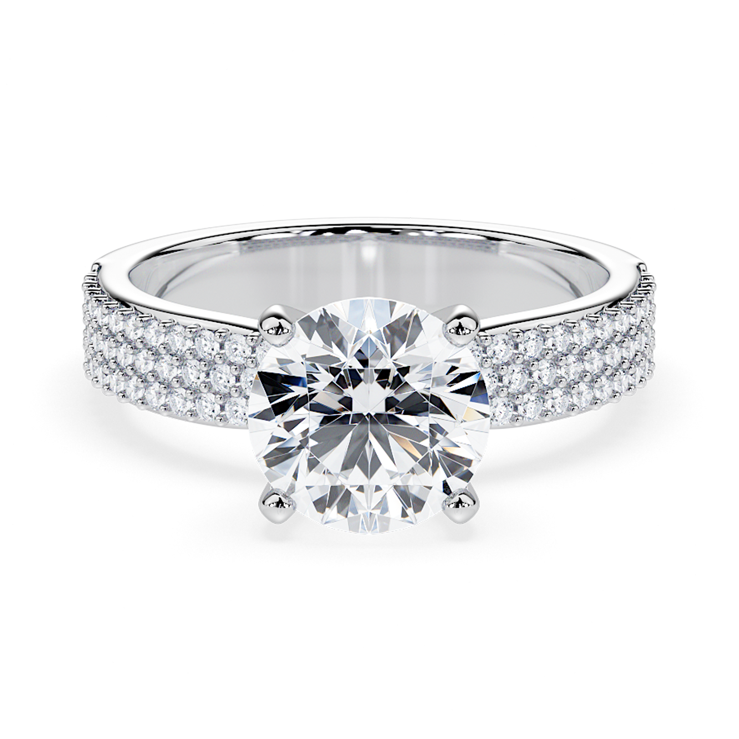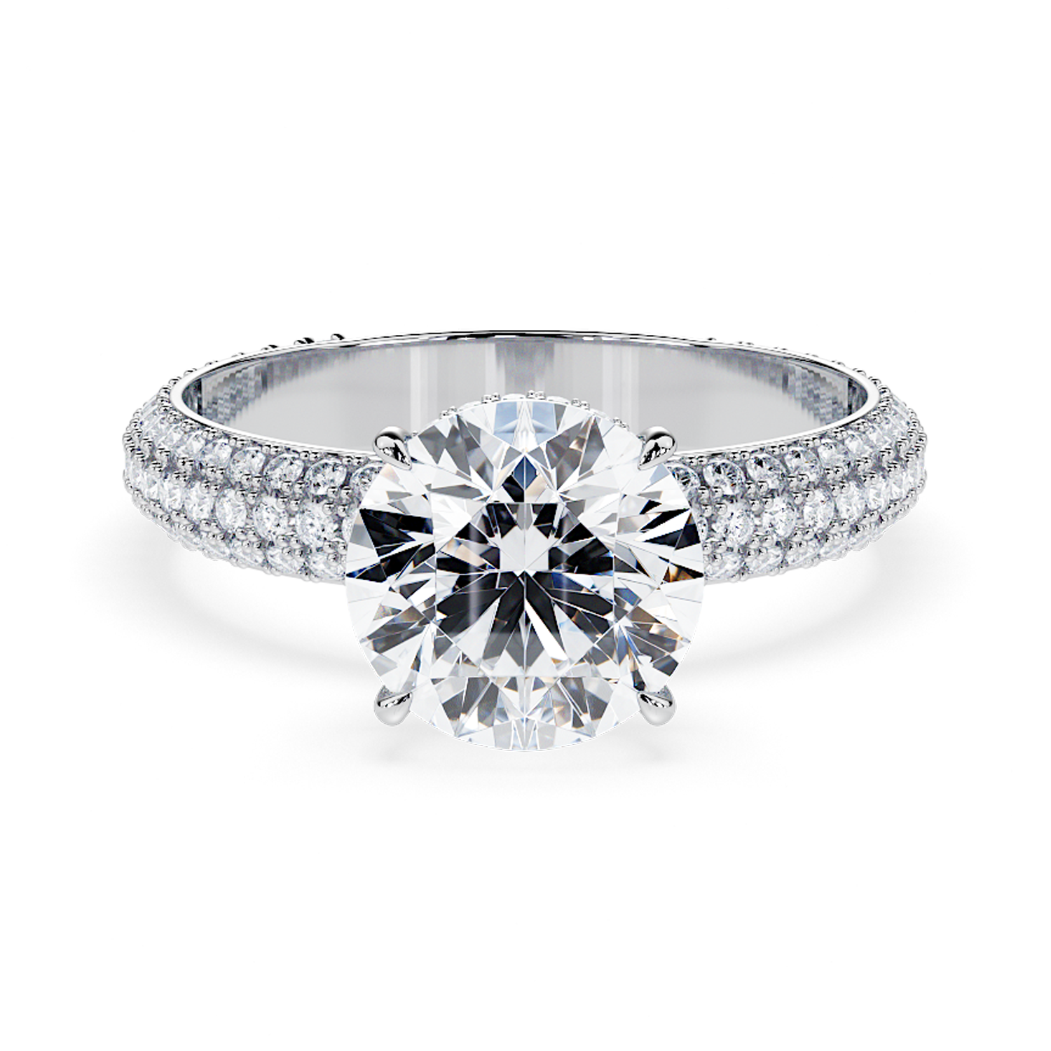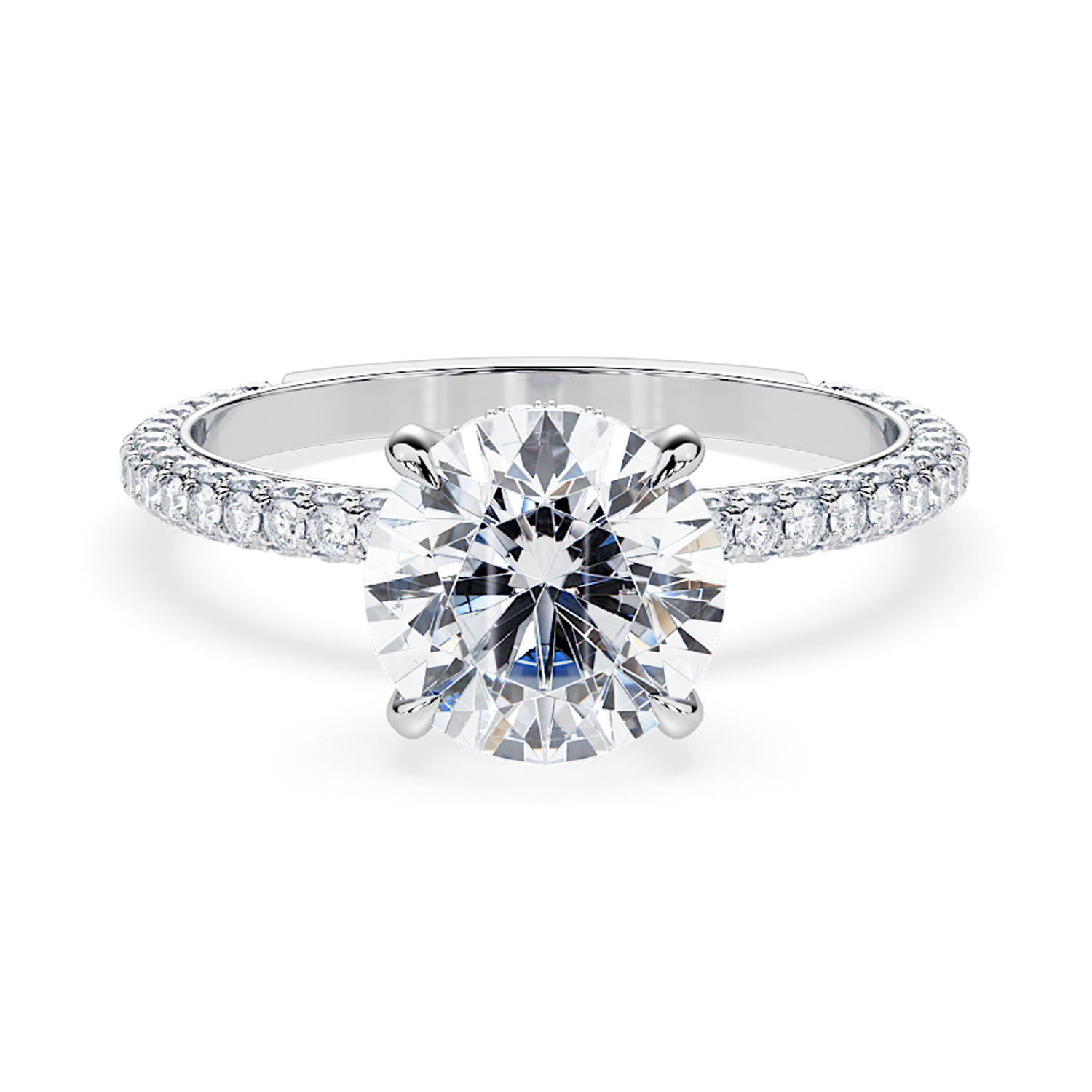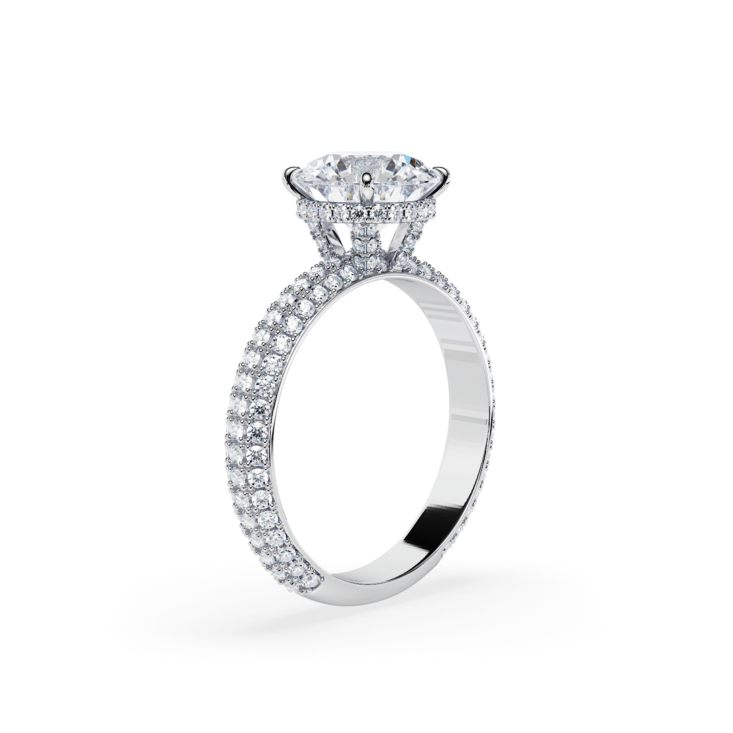 Round Brilliant Three Row Pavé with Hidden Halo and Diamond Set Prongs