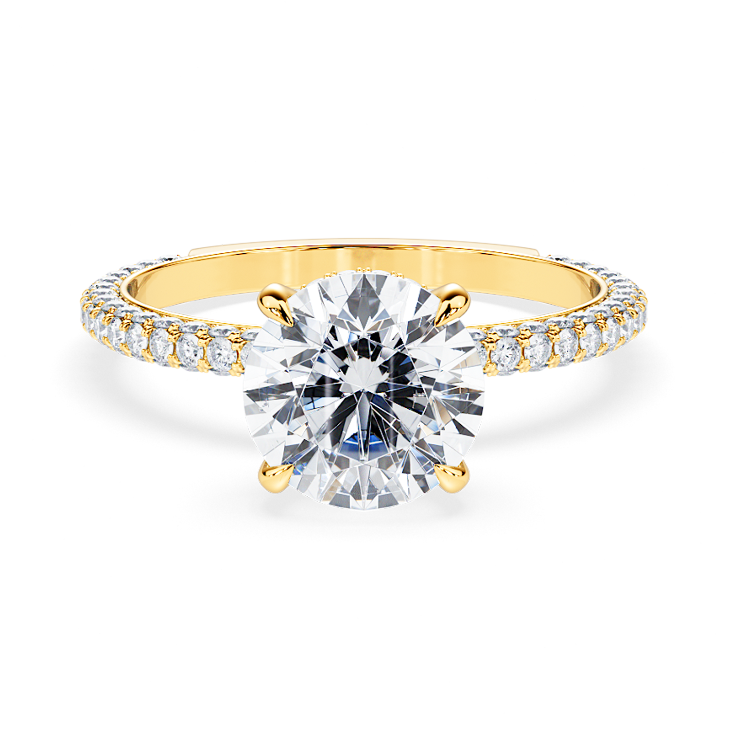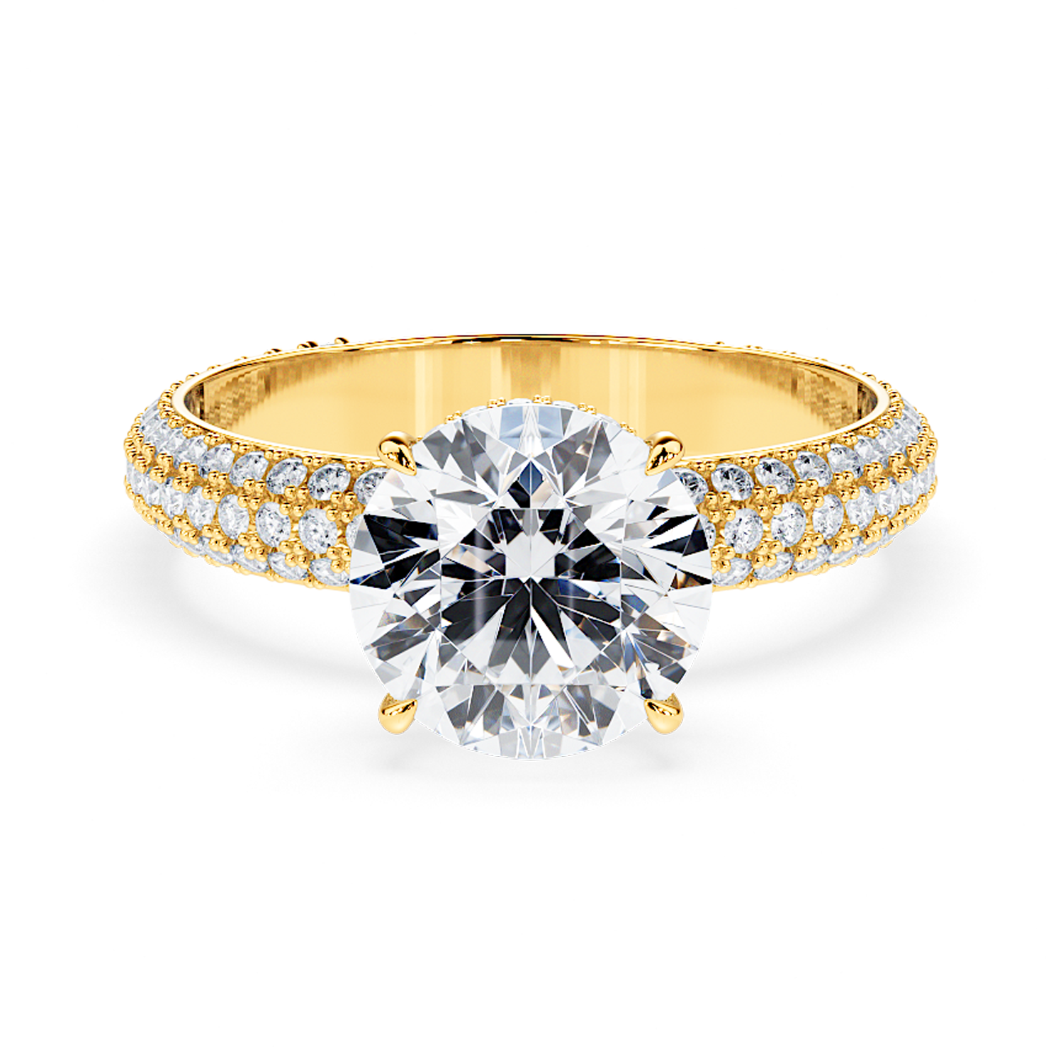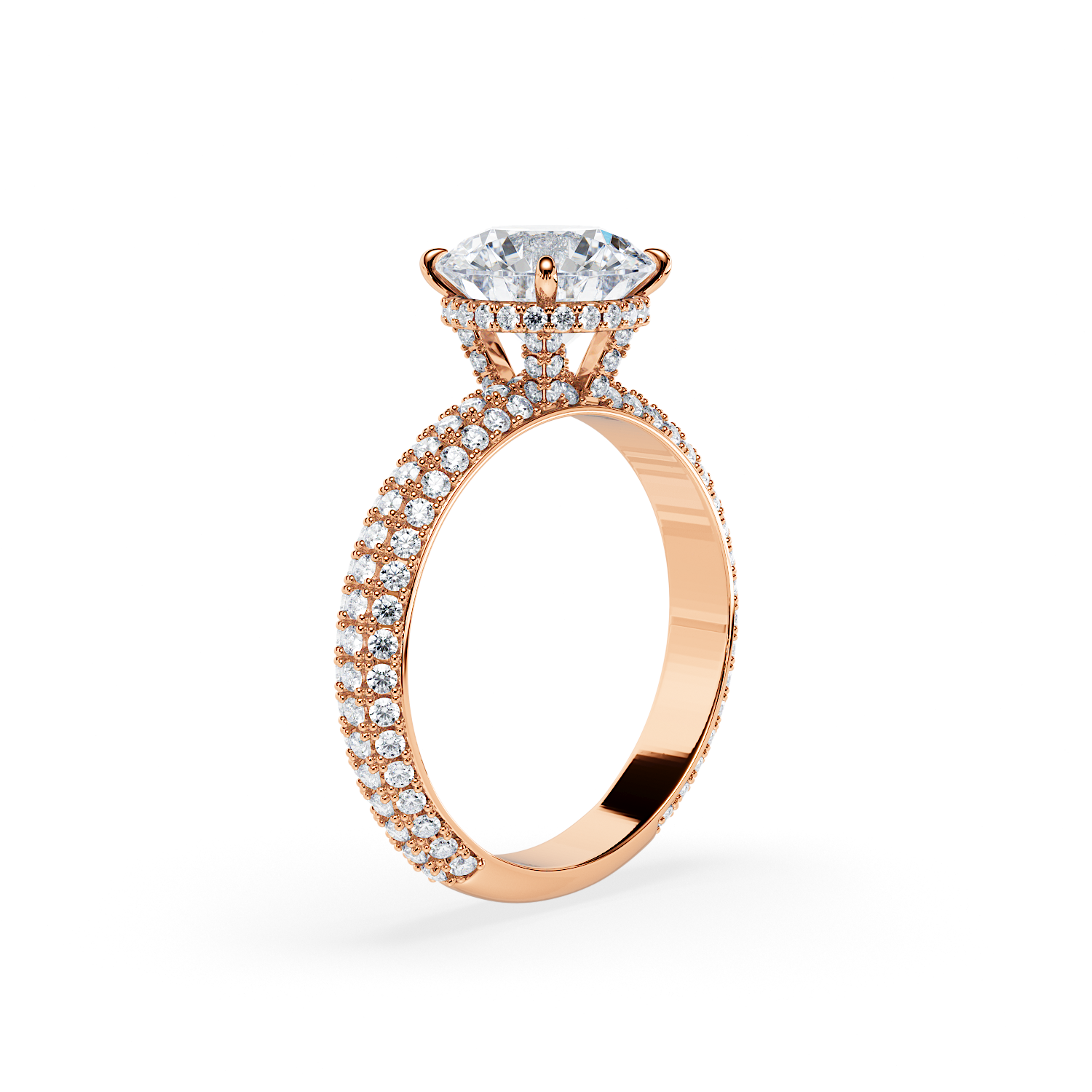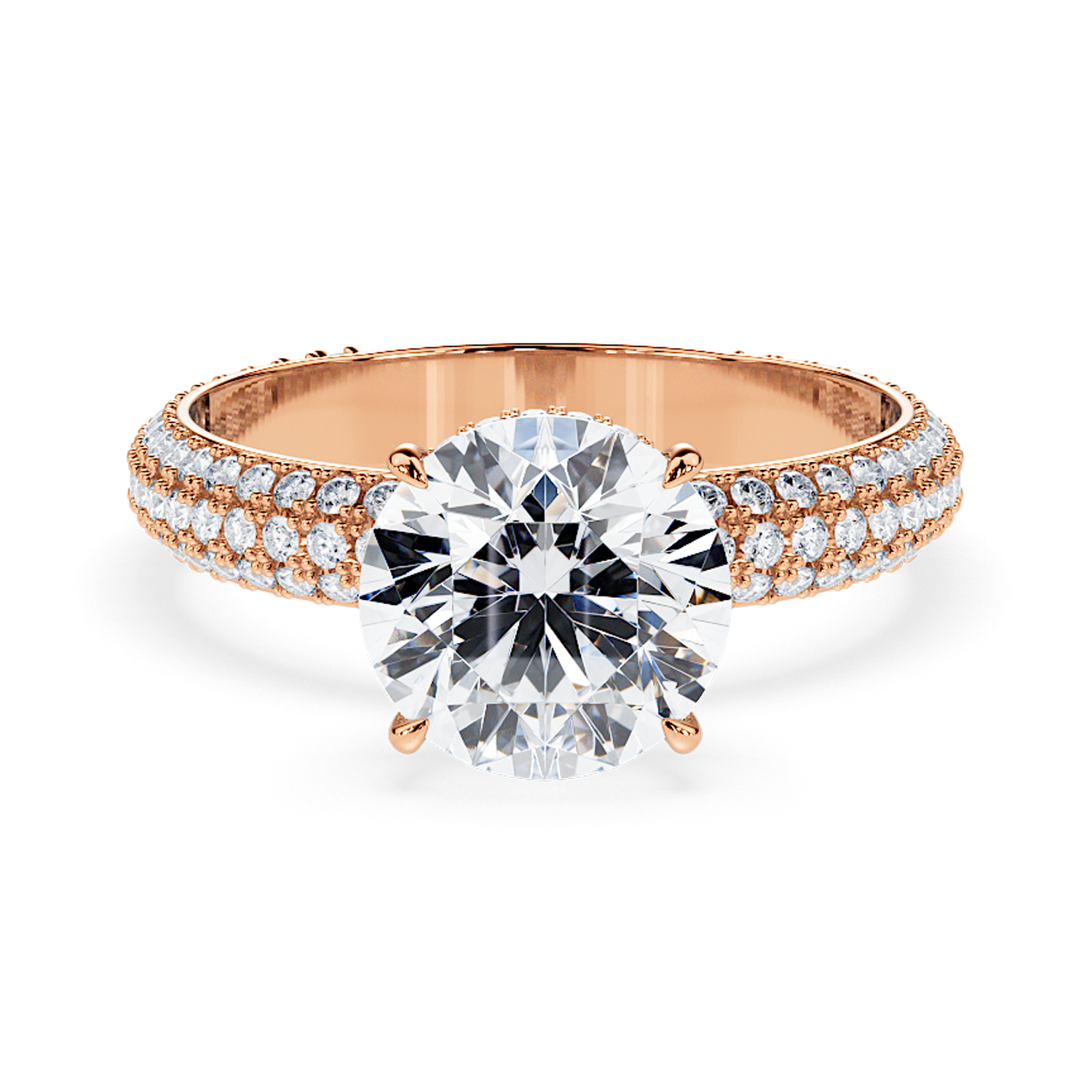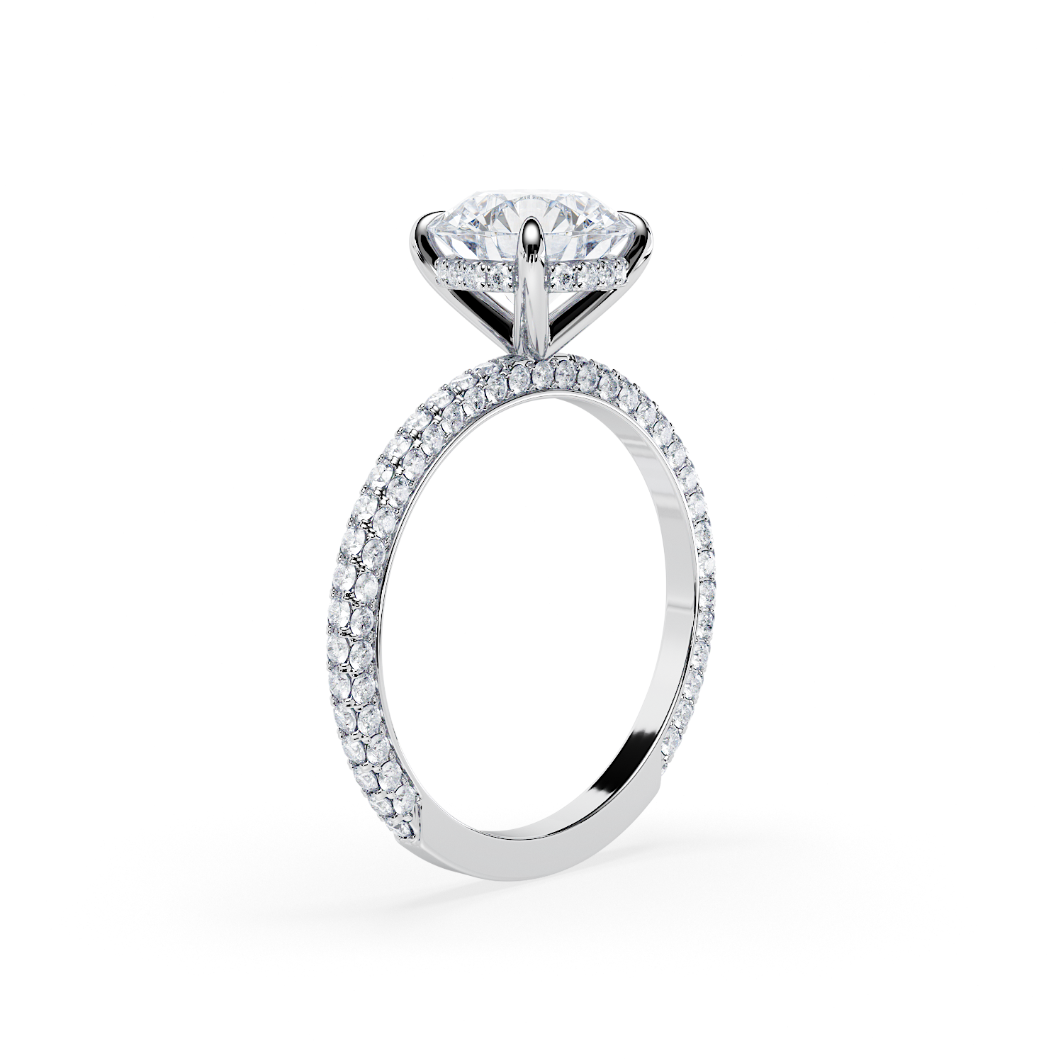 Round Brilliant Three Row Pavé with Hidden Halo and Diamond Set Prongs