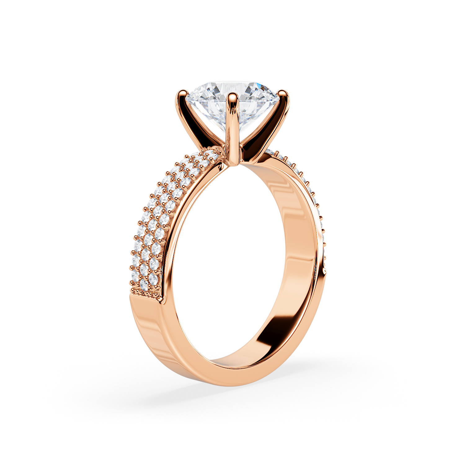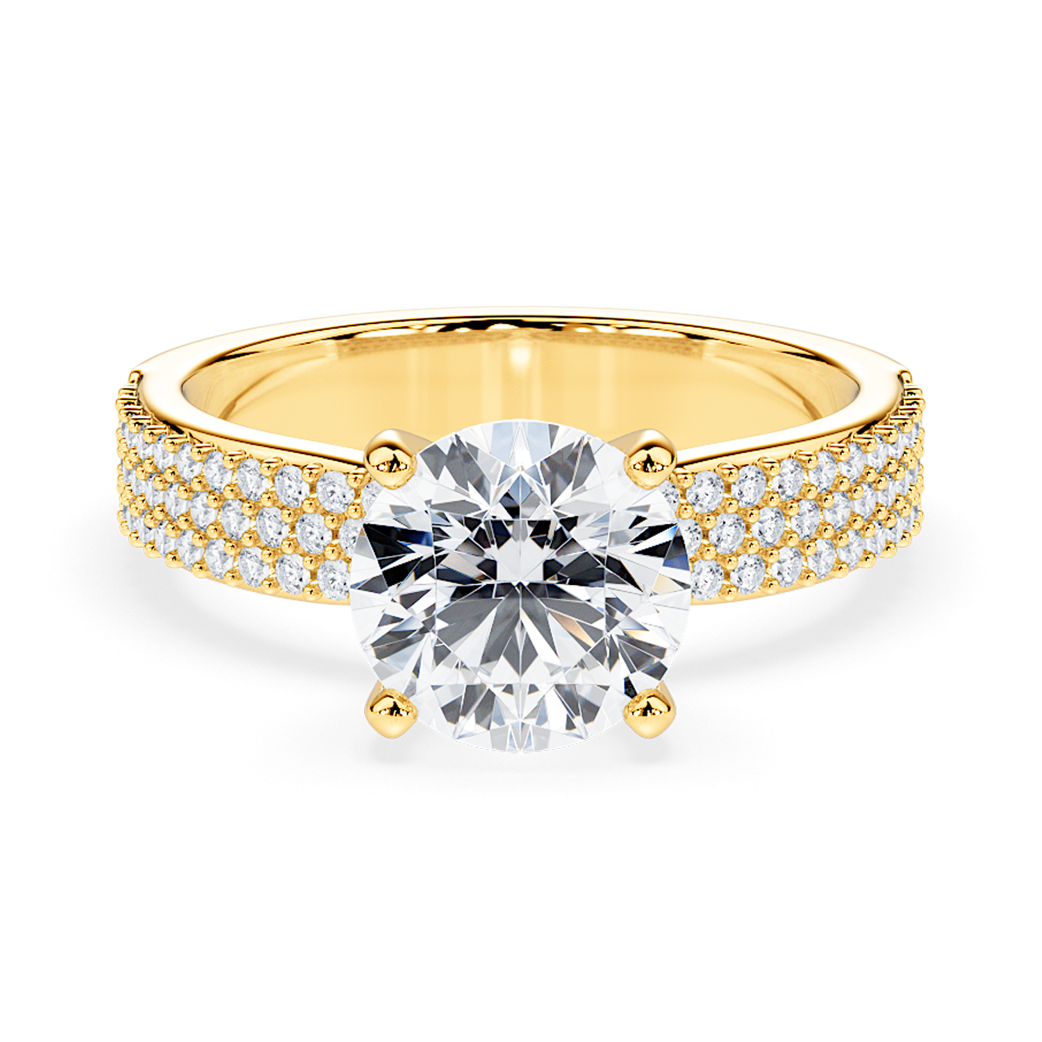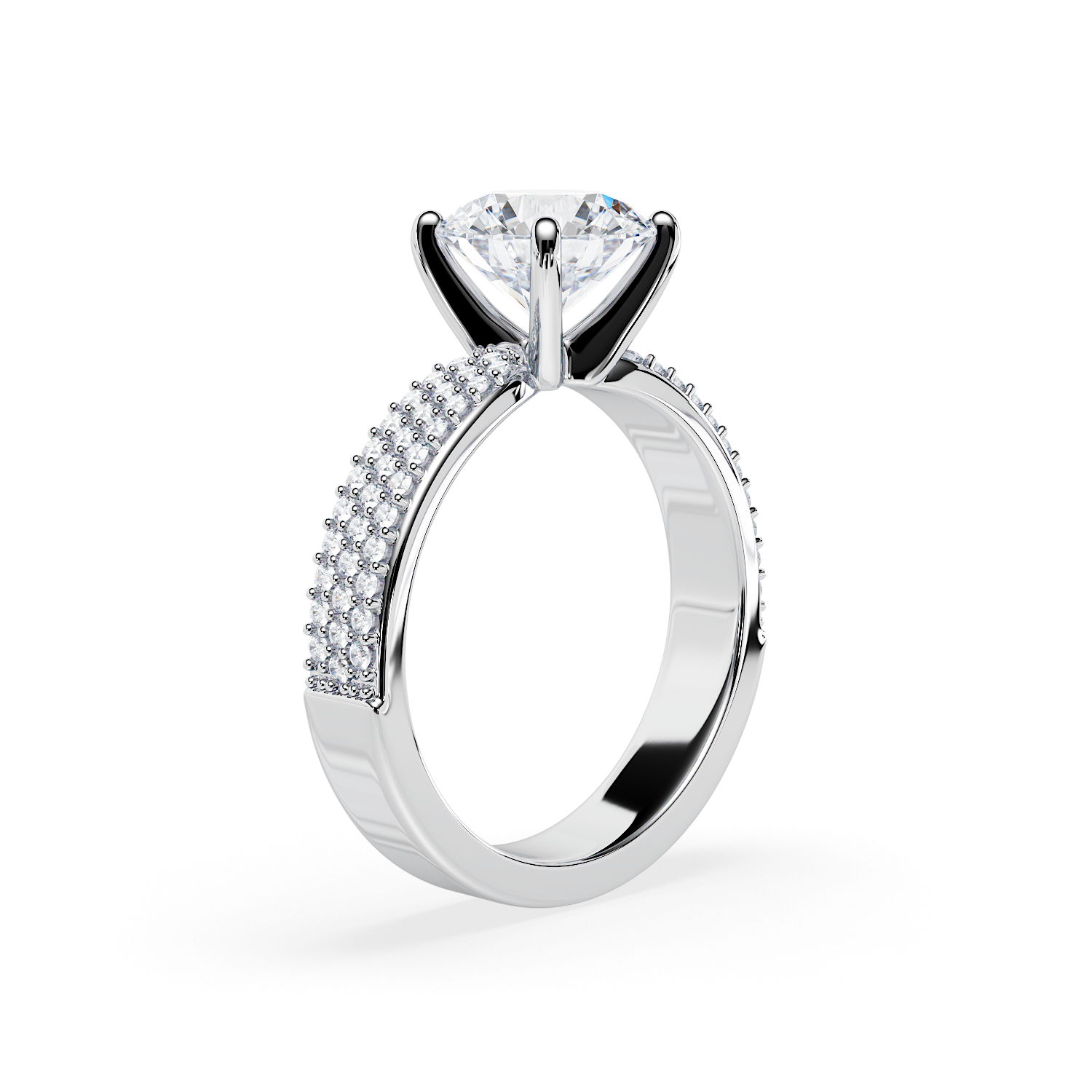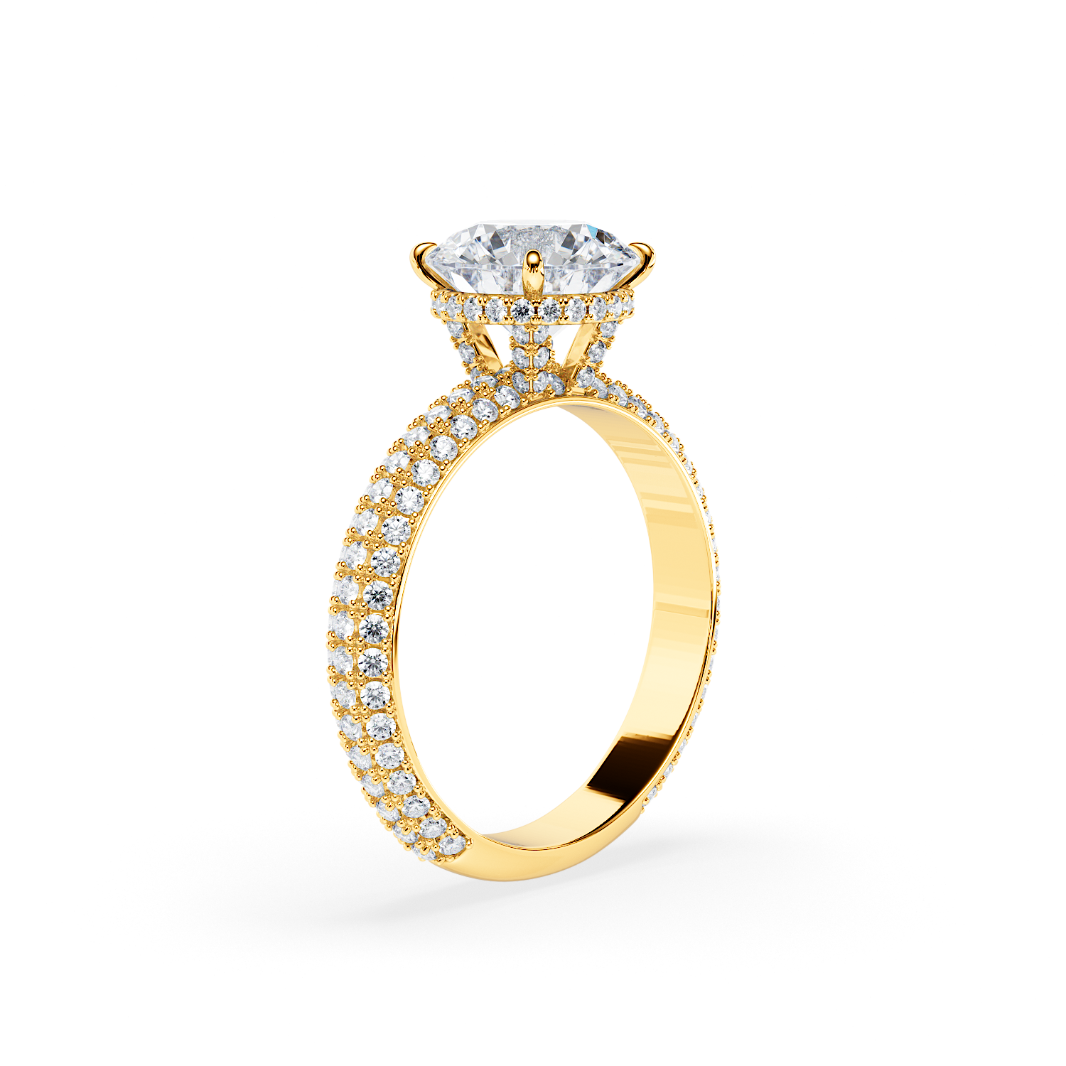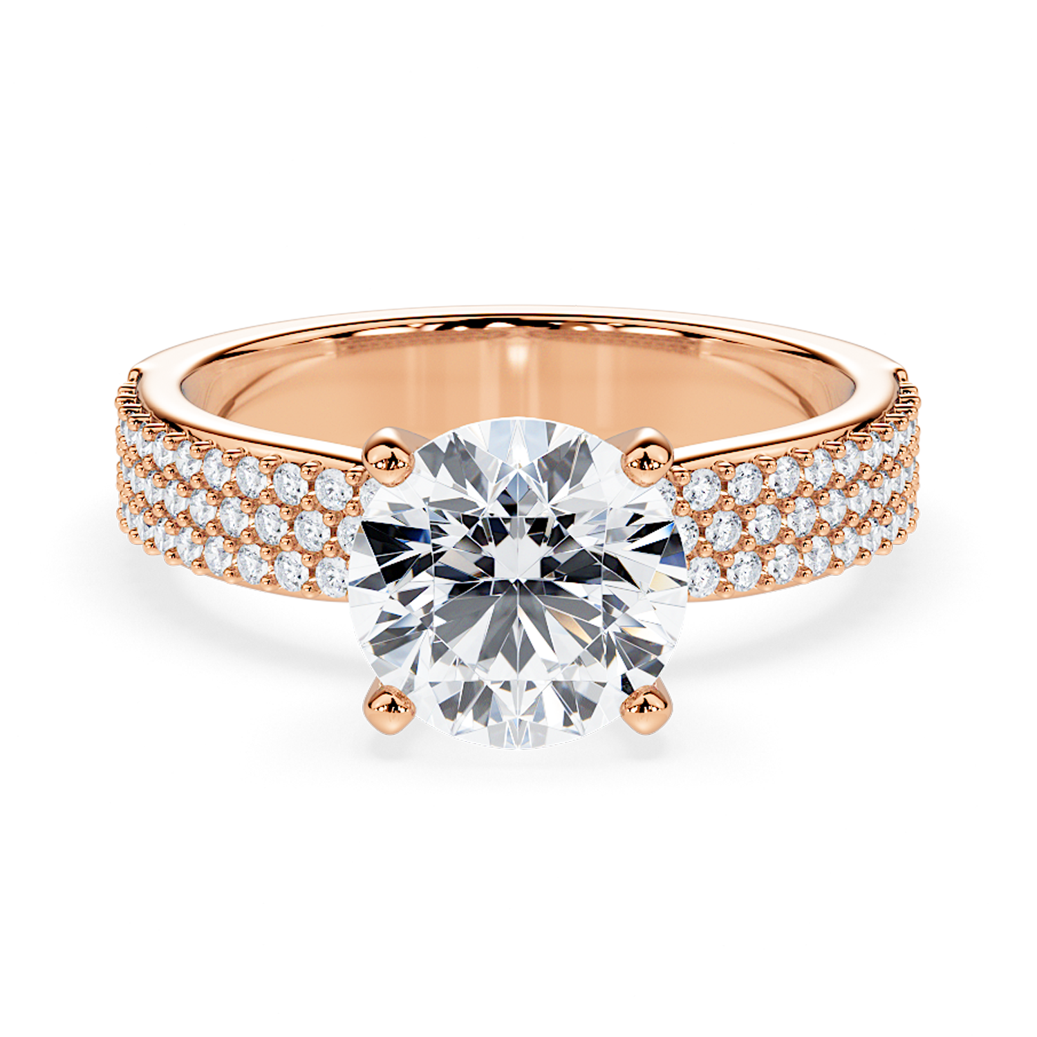 Round Brilliant Three Row Pavé with Hidden Halo and Diamond Set Prongs