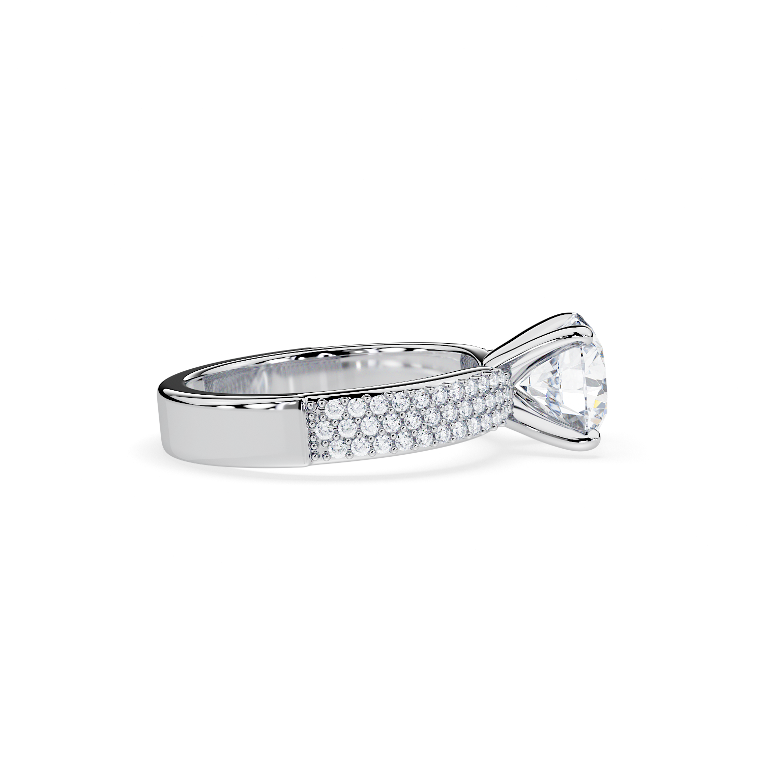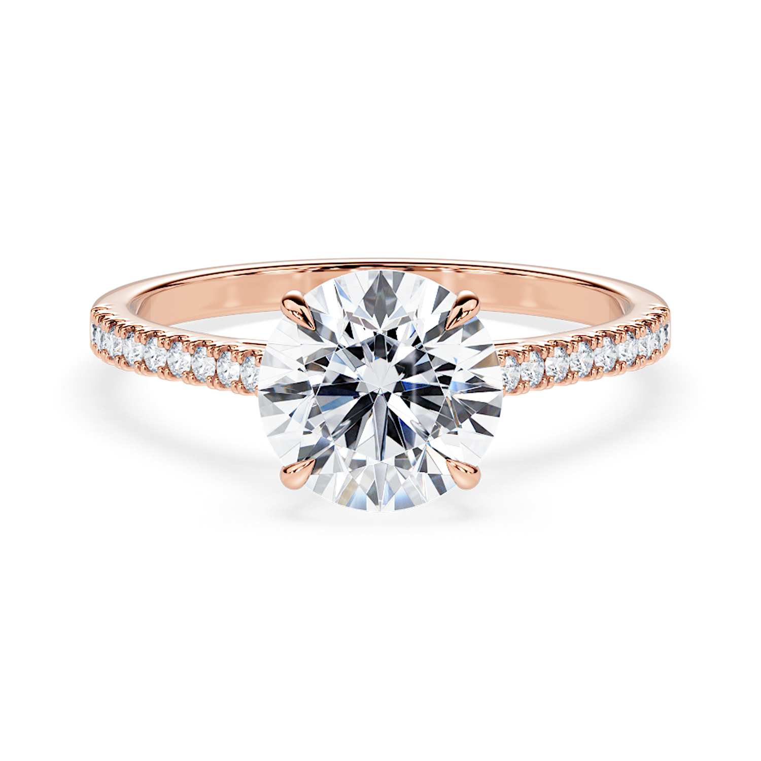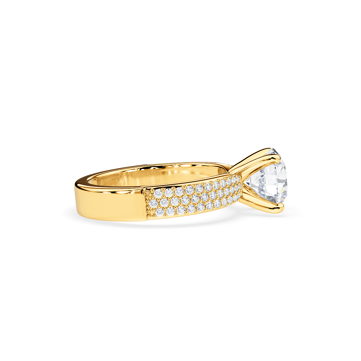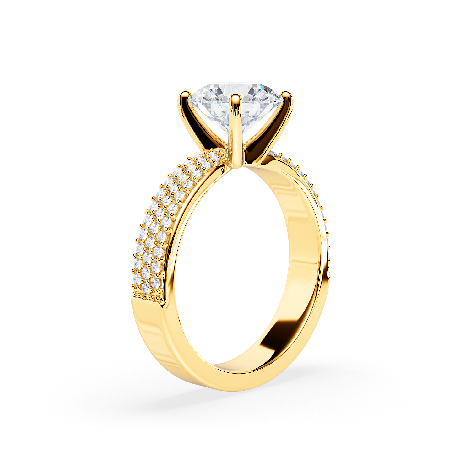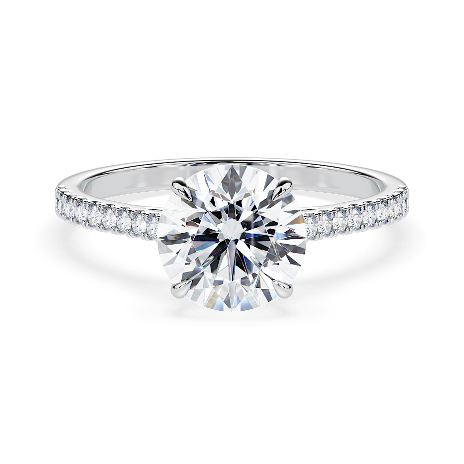 Round Brilliant Three Row Pavé with Hidden Halo and Diamond Set Prongs