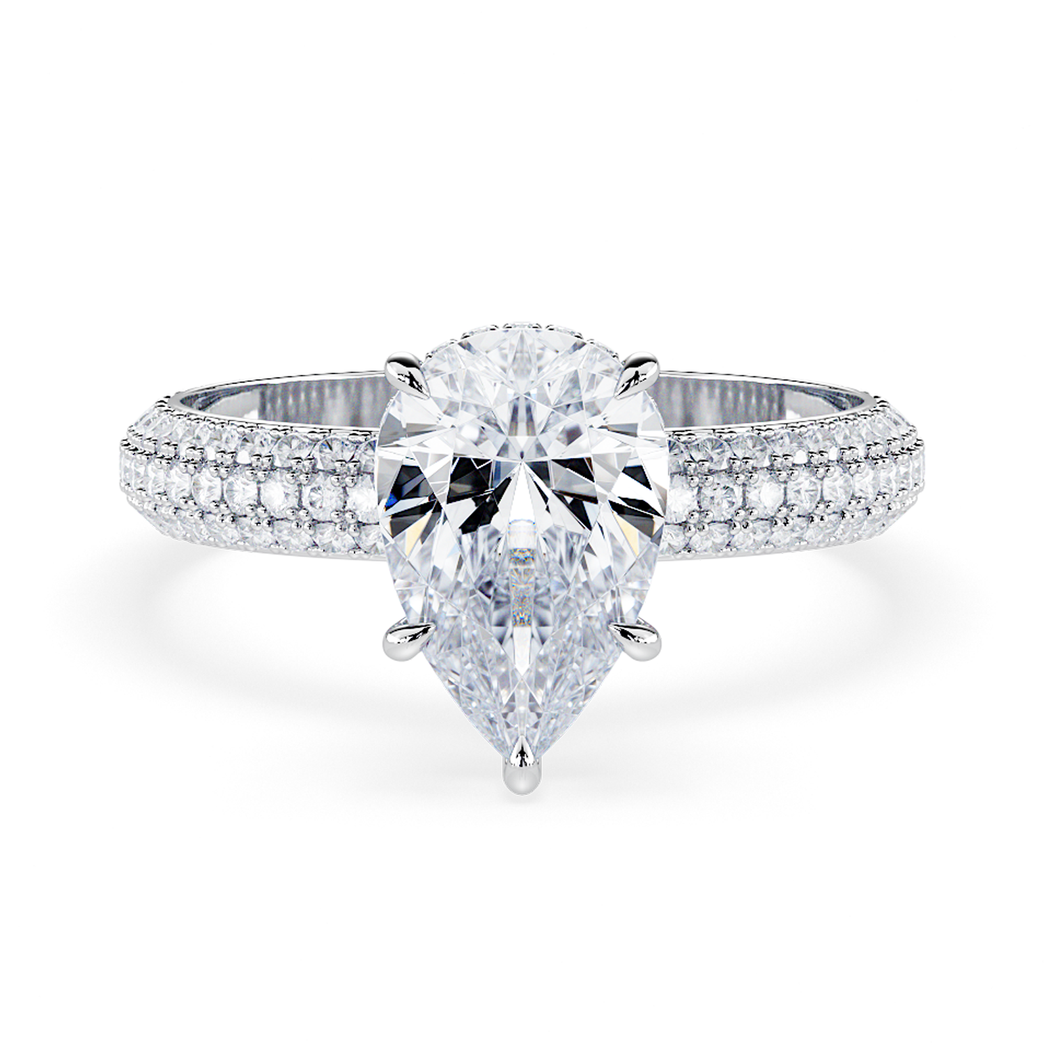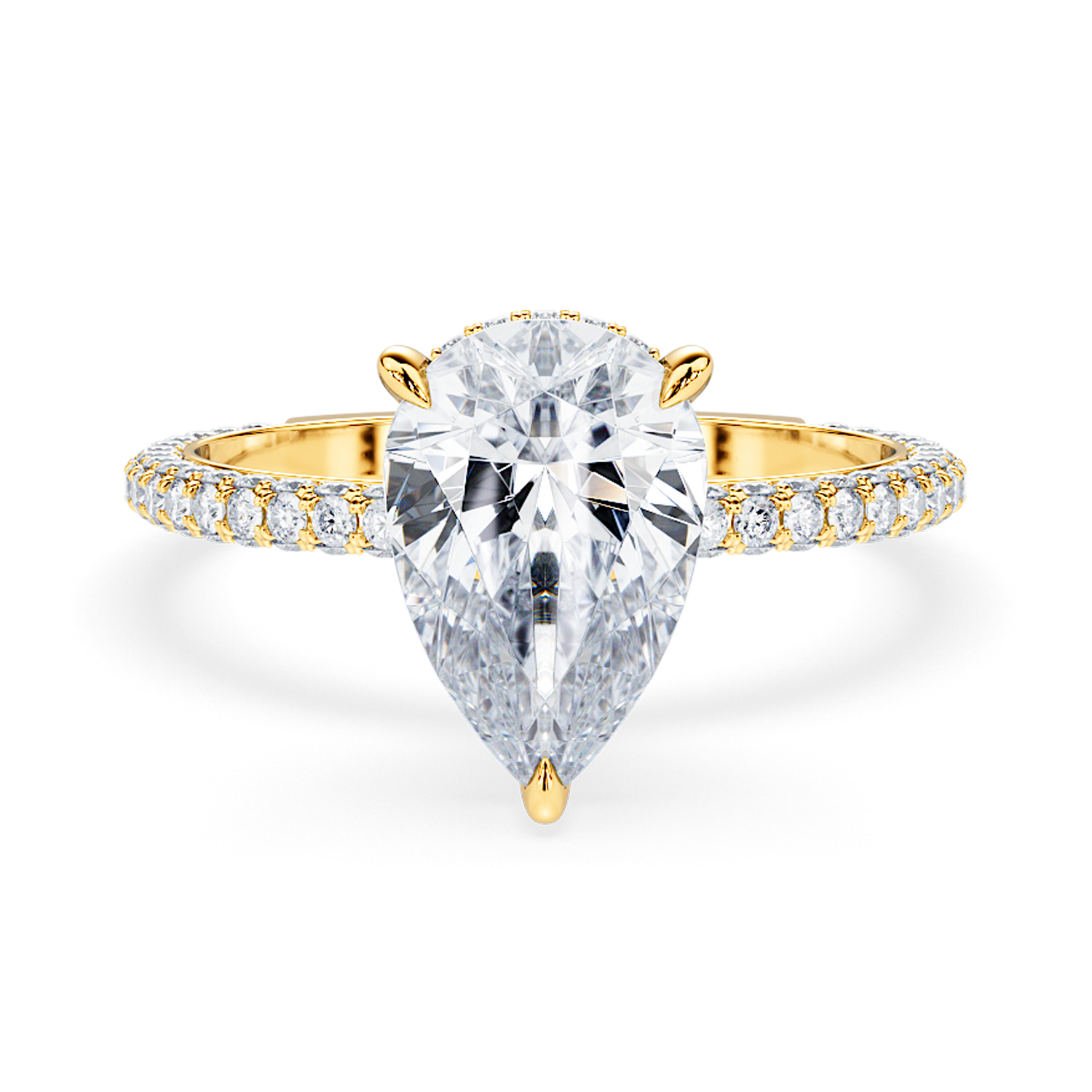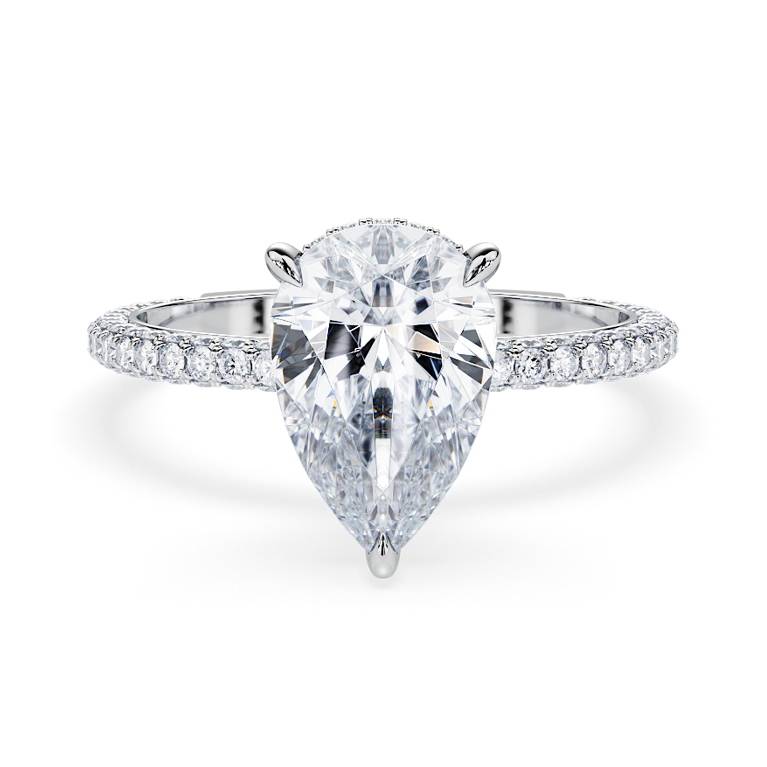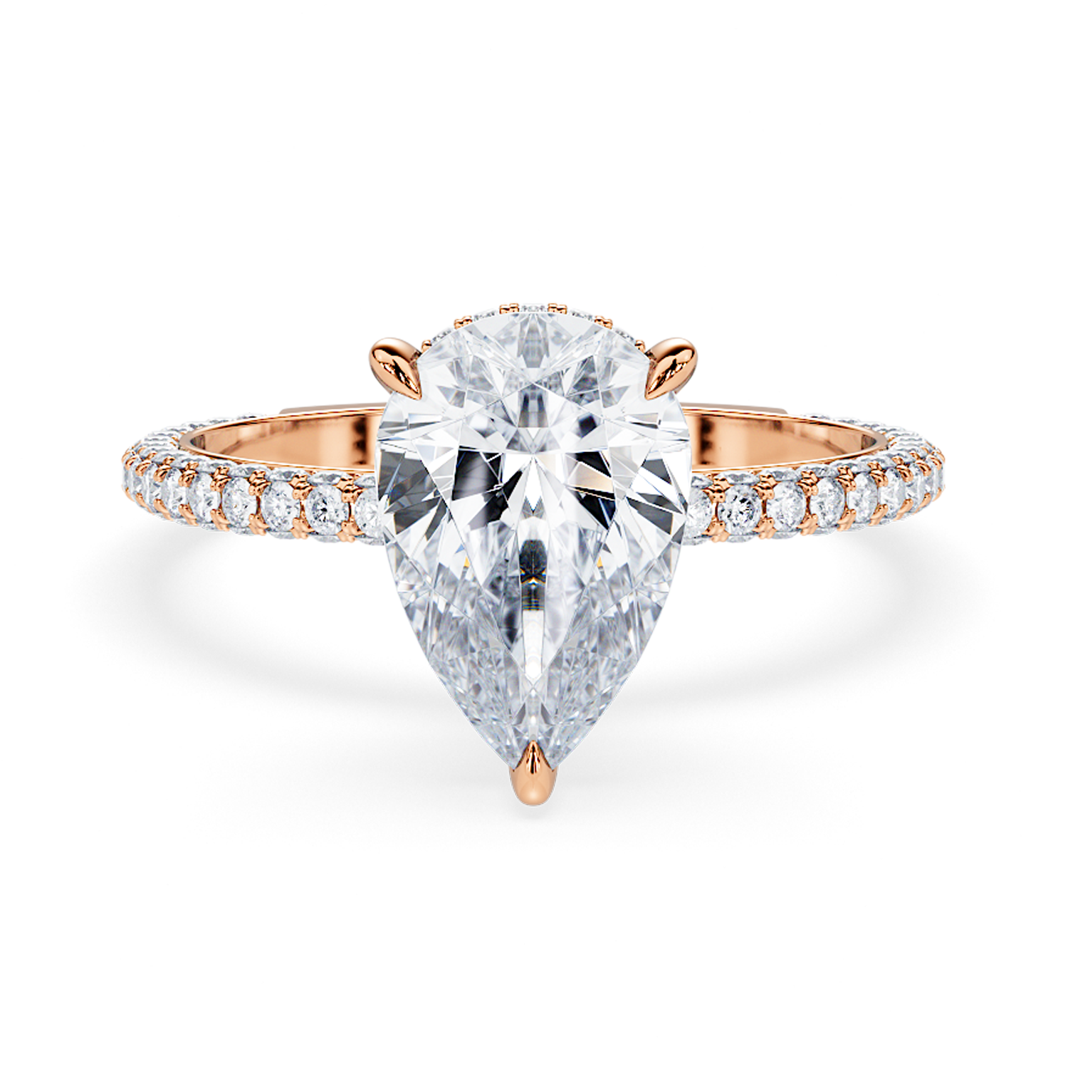 Pear Three Row Pavé with Hidden Halo and Diamond Set Prongs