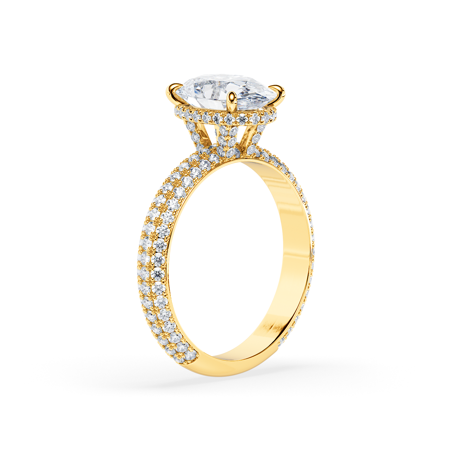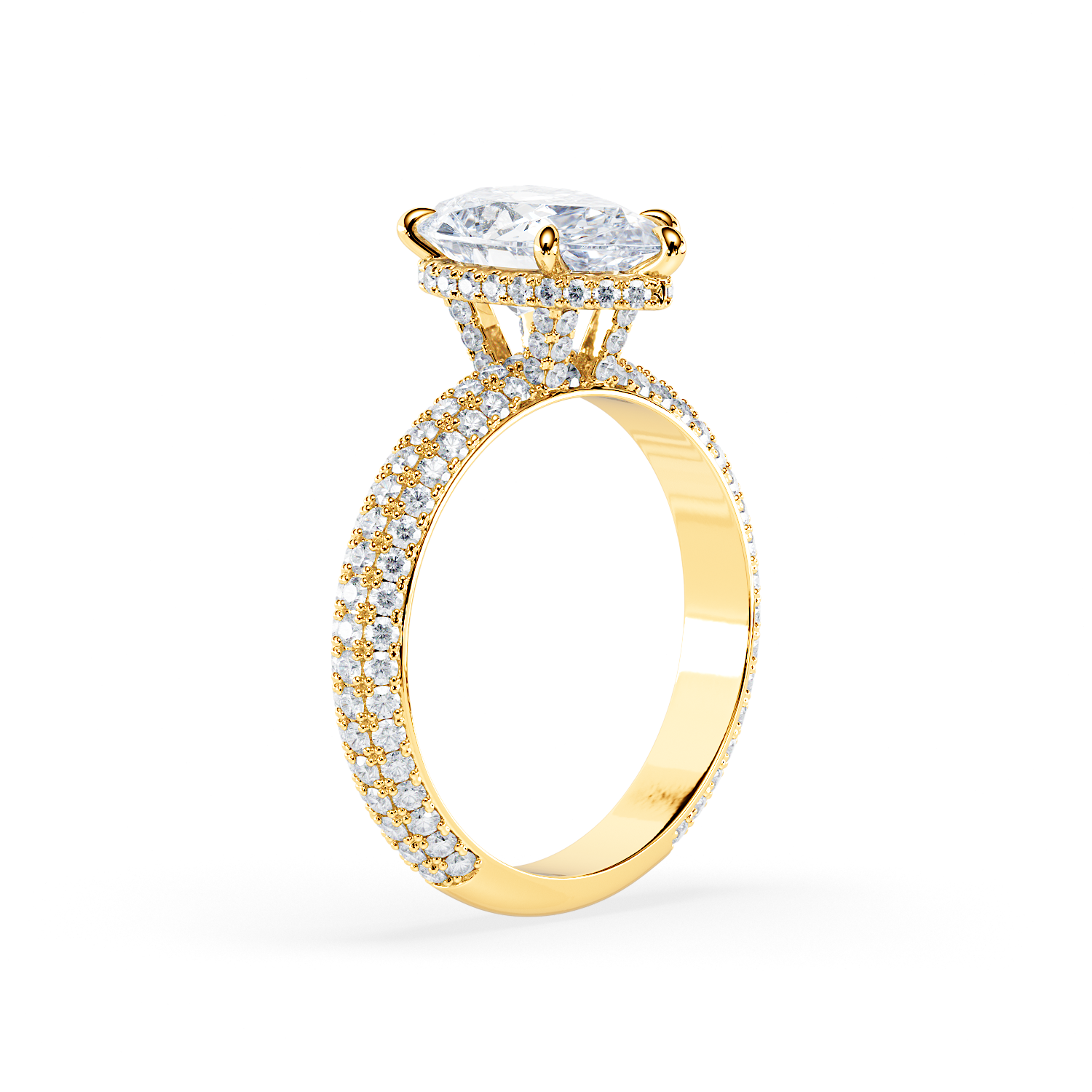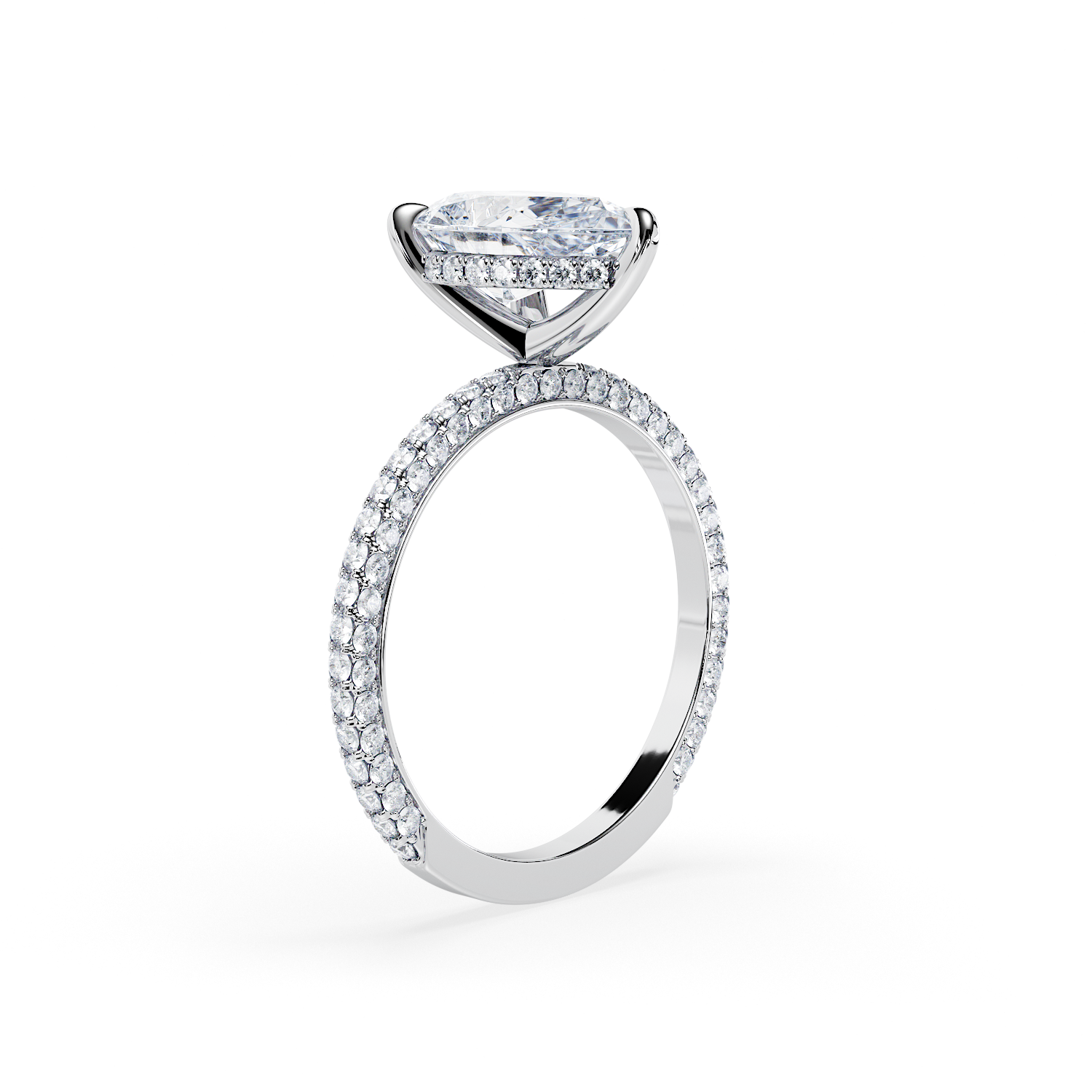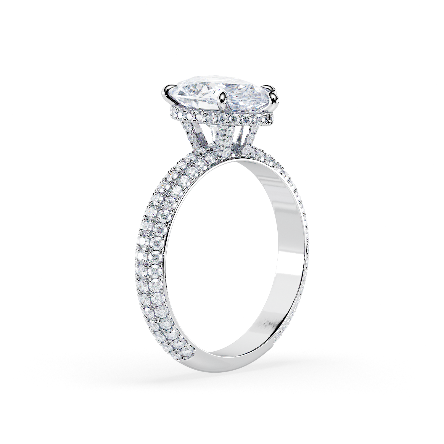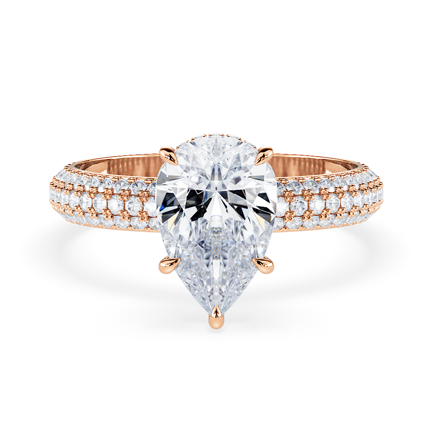Pear Three Row Pavé with Hidden Halo and Diamond Set Prongs