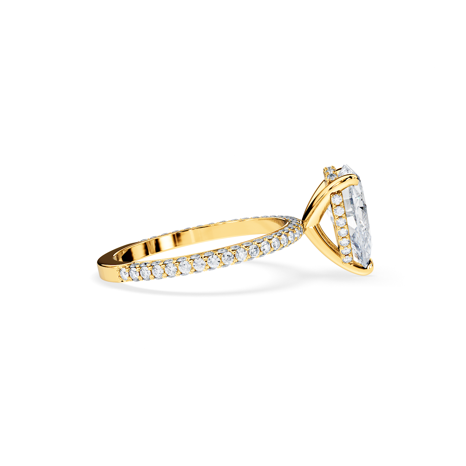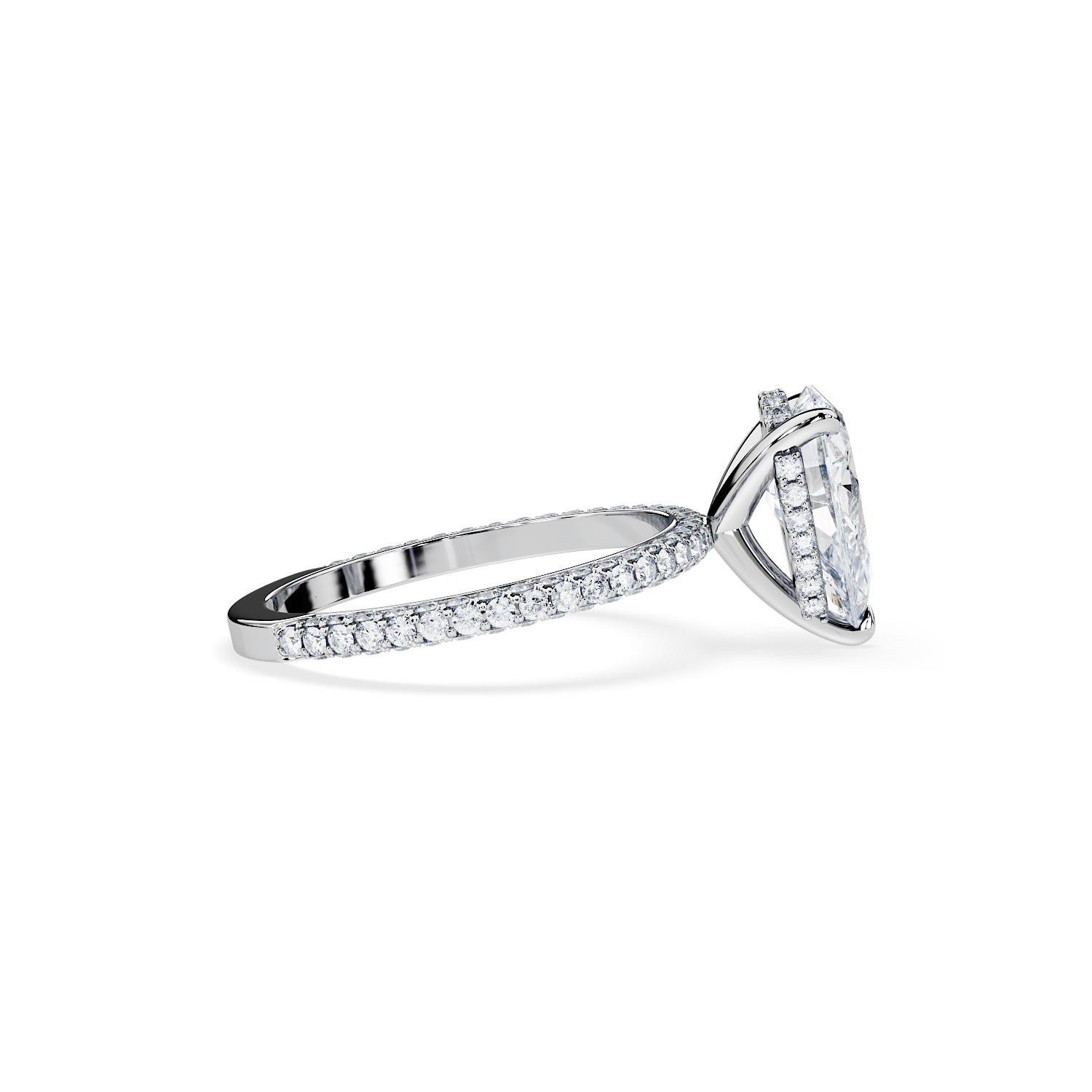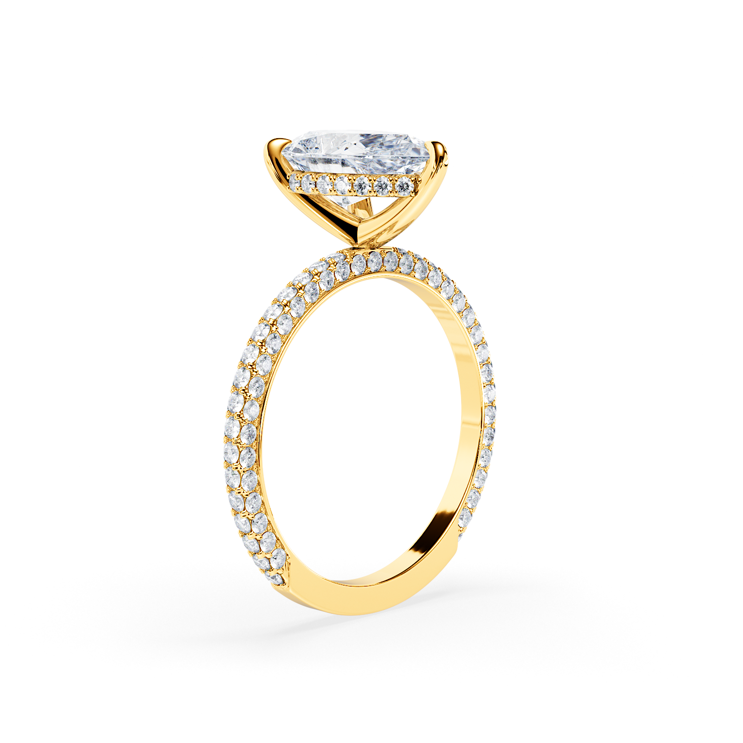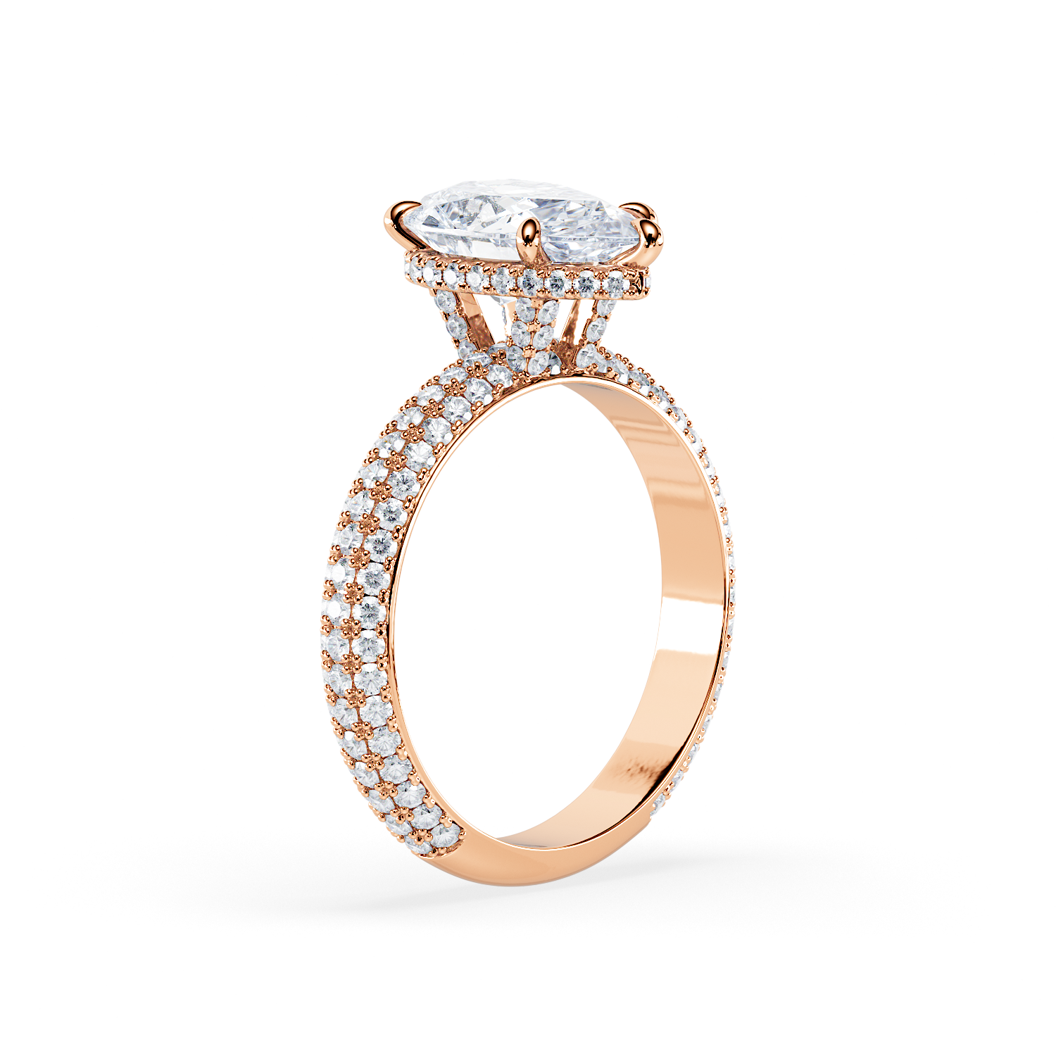 Pear Three Row Pavé with Hidden Halo and Diamond Set Prongs